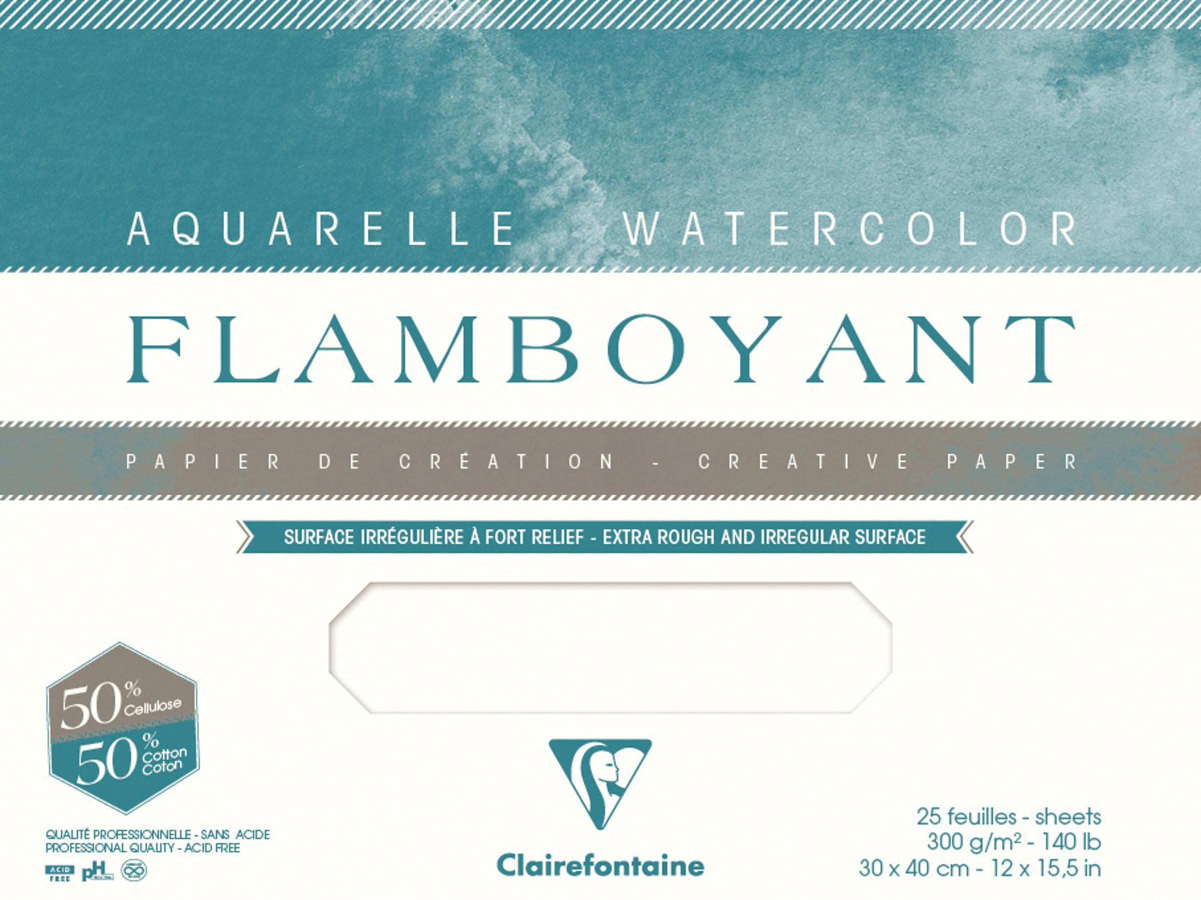 Das 300 g/m²-Aquarellpapier besteht zu je 50 % aus Hadern und holzfreier Zellulose. Dank seiner Körnung hat es einen besonders natürlichen Weiß-Ton. Die außergewöhnliche, extra raue Oberfläche erlaubt spannende Effekte. Korrekturen auf dem Papier sollten nur sehr behutsam, am besten mit Wasser, vorgenommen werden.