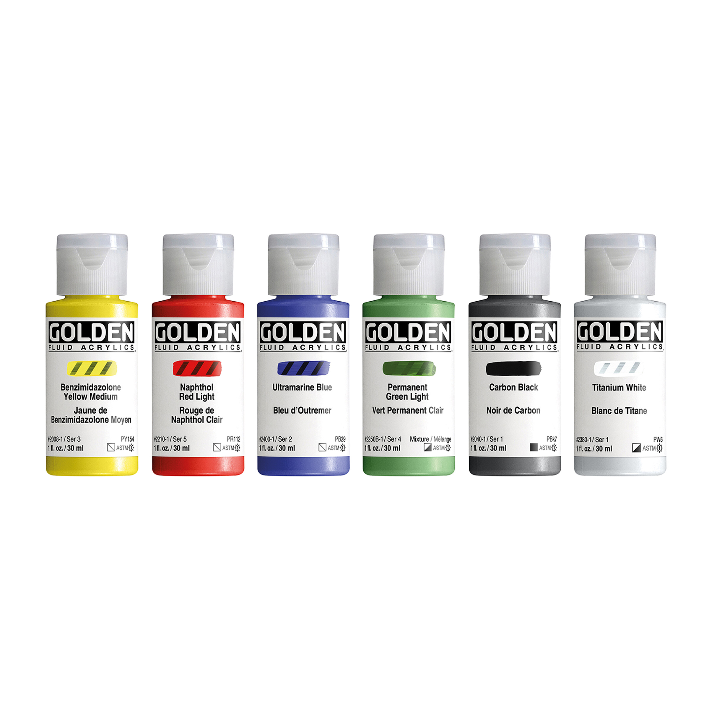 Golden Fluid Acrylics weisen eine sahneartige Konsistenz auf. Die hochpigmentierten Farben enthalten keine Zusatzstoffe wie z. B. Mattierungsmittel oder Füllstoffe, woraus eine hohe Brillanz resultiert. Fluid Acrylics sind lichtecht,...