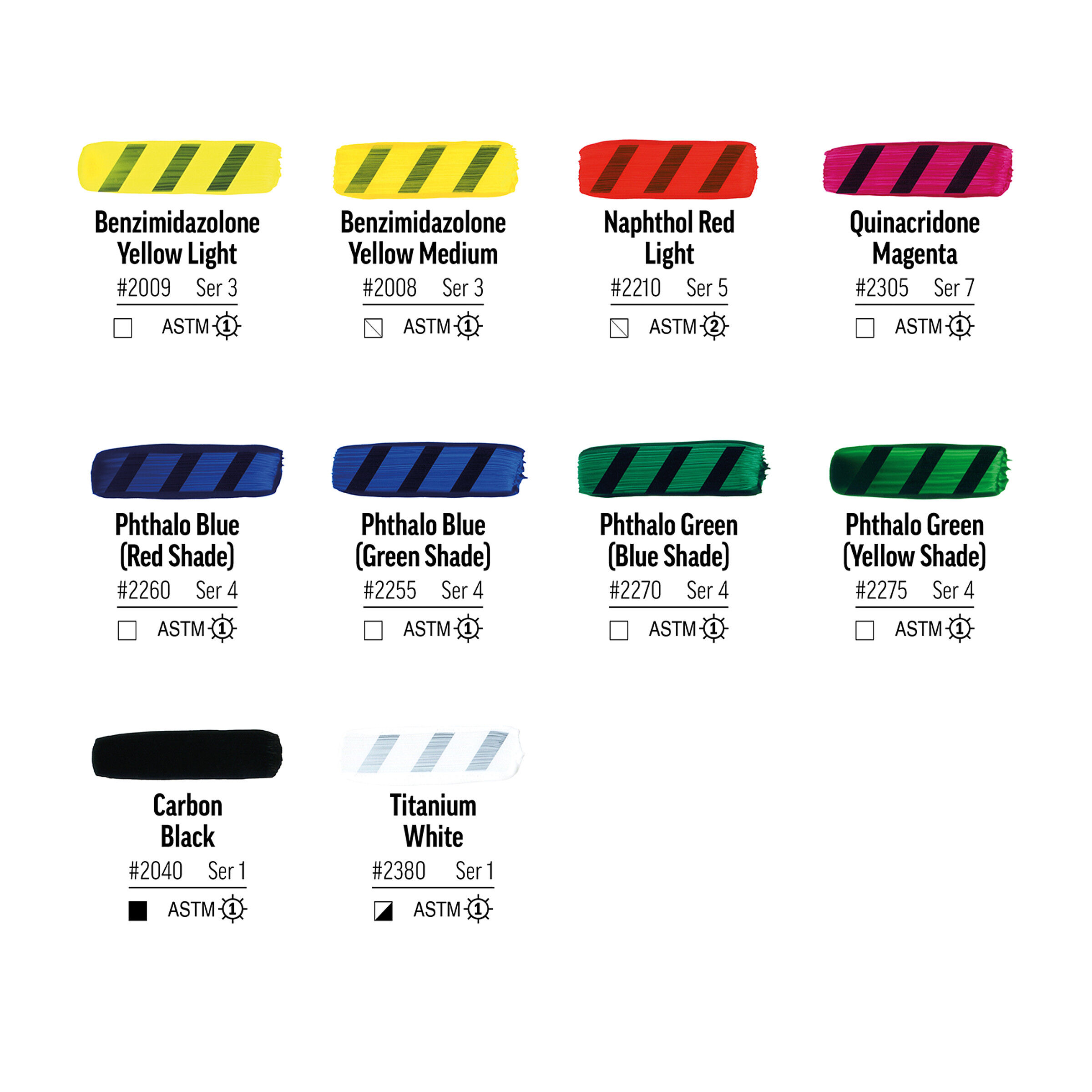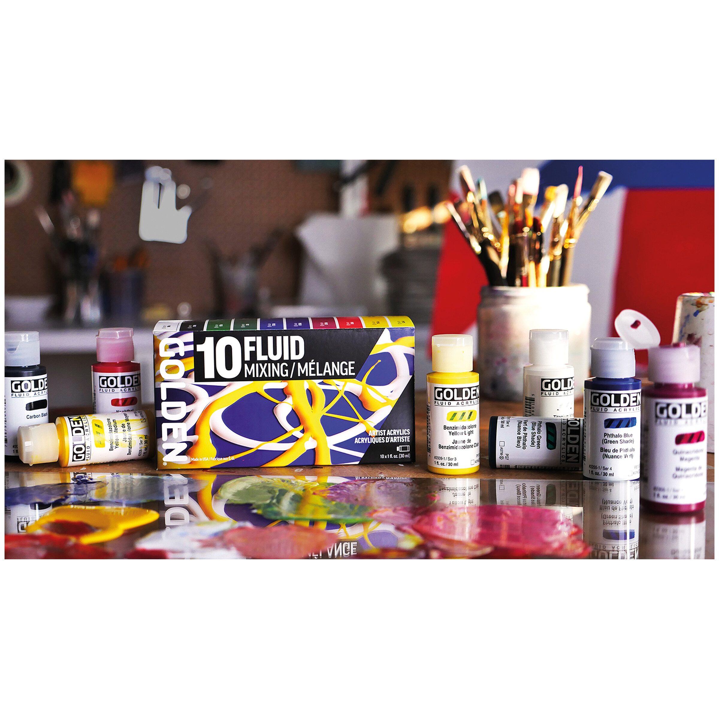 Golden Fluid Acrylics weisen eine sahneartige Konsistenz auf. Die hochpigmentierten Farben enthalten keine Zusatzstoffe wie z. B. Mattierungsmittel oder Füllstoffe, woraus eine hohe Brillanz resultiert. Fluid Acrylics sind lichtecht,...