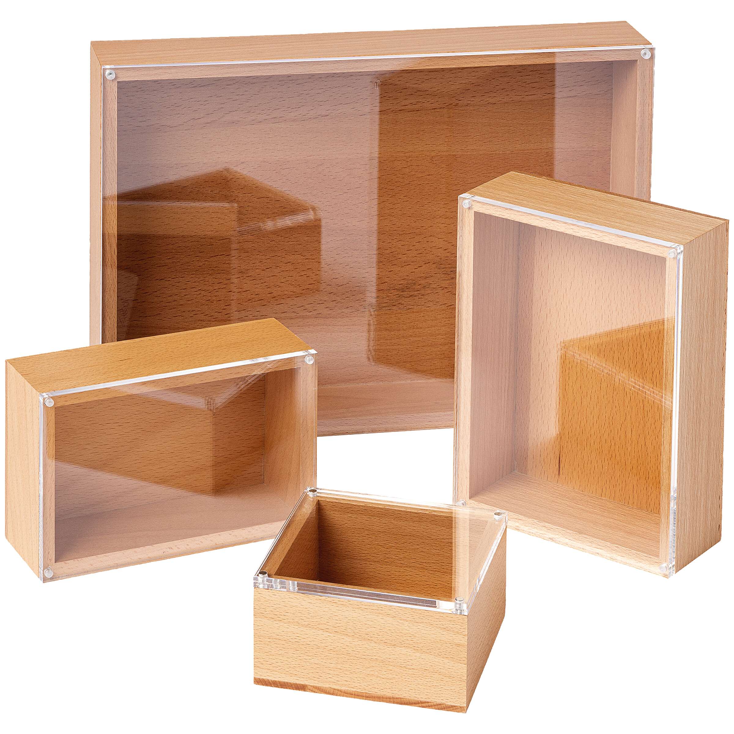 Die elegante Box aus lackiertem Buchenholz verfügt über einen klaren Acrylglas-Deckel, der aus zwei übereinanderliegenden Scheiben besteht und durch Magnete sicher fixiert wird. Zwischen den Scheiben lassen sich Fotos oder kleine Werke...