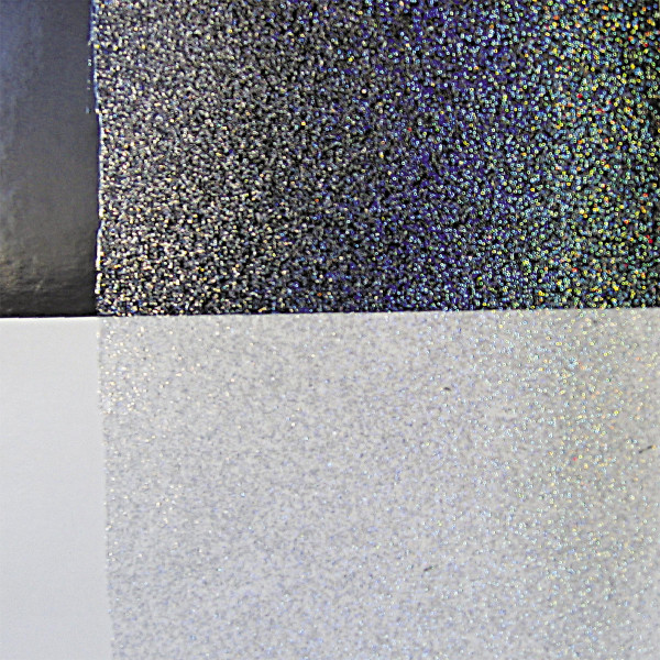 Trocknet holografisch schillernd mit widerstandsfähigem, klarem Film auf. Die Wirkung verstärkt sich bei Lichteinfall und ist besonders ausdrucksvoll auf dunklen Untergründen. Die Durchtrocknung richtet sich nach der Schichtdicke. Wahlweise mit feinem oder grobem Glitter erhältlich.