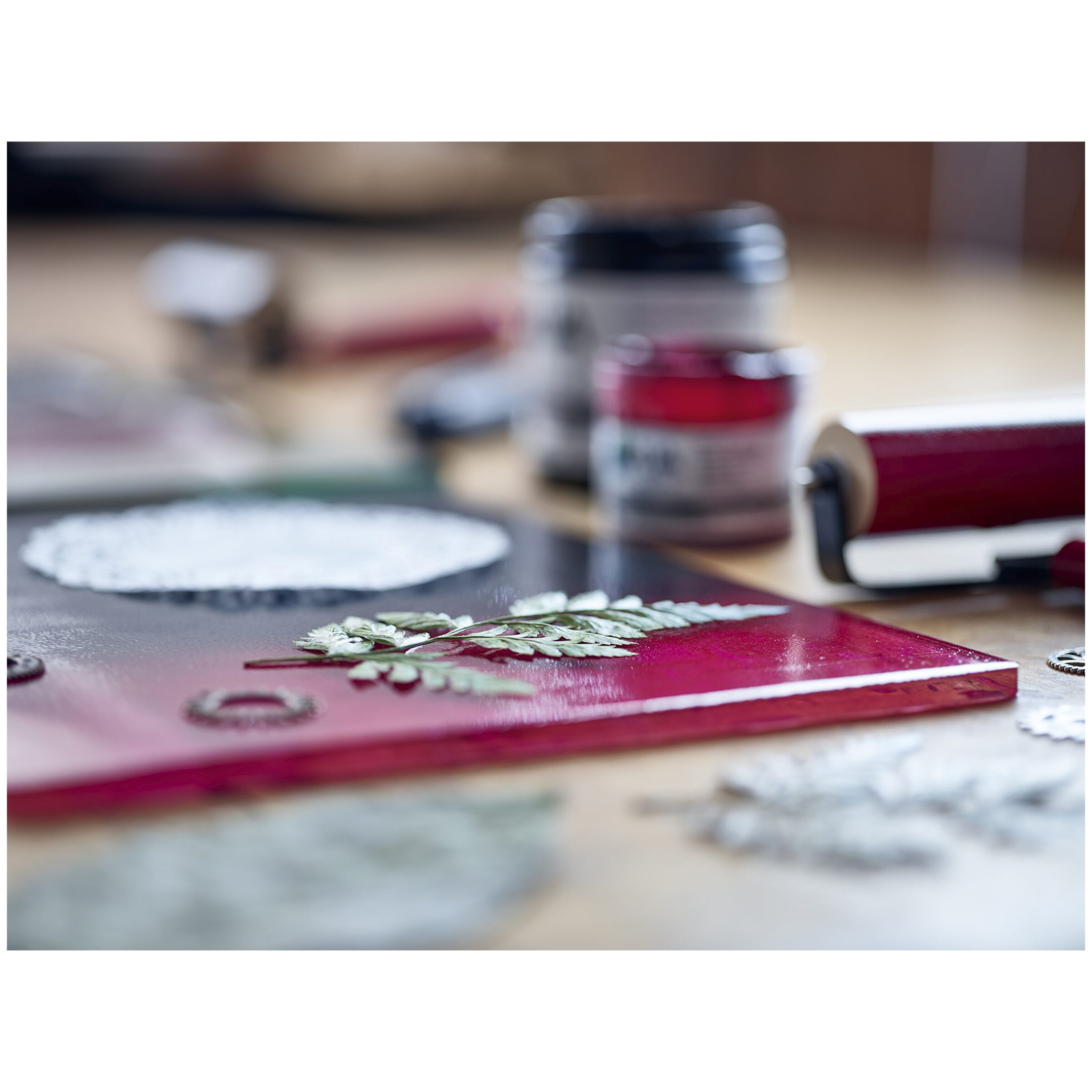 Mit den silikonartigen, haltbaren Druckplatten für die Monotypie lassen sich einzigartige Drucke für Mixed-Media-Arbeiten, Kartengestaltung, Journaling, Scrapbooking und vieles mehr erstellen. Speedball Gel Printing Plates sind speziell für wasserlösliche Druckfarben (z. B. Speedball Akua Intaglio Ink) konzipiert. Bei gewünschter Verwendung konventioneller, schnell trocknender Acrylfarben empfiehlt sich der Zusatz entsprechender trocknungs- und farbflussverzögernder Medien wie z. B. boesner Siebdruckmedium und/oder Retarder.