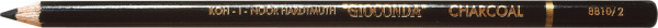 Tiefschwarzer Strich. Stift aus hochwertiger Reißkohle, eingefasst in lackierten Holzmantel. Länge: ca. 12 cm.