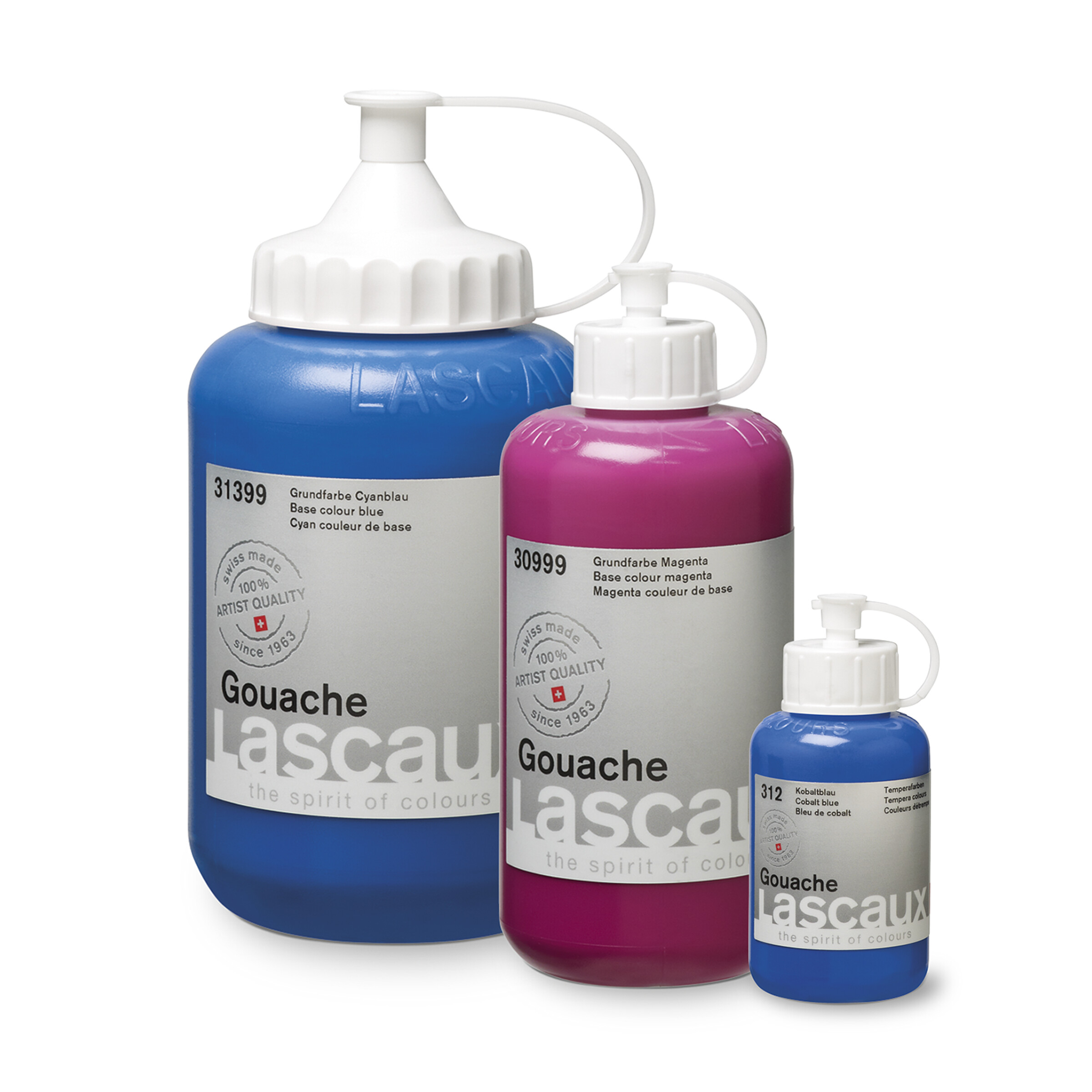 Acrylmodifizierte Gouache für den Kunst- und Designbereich sowie für die Pädagogik. Die ausgewogenen Farbtöne überzeugen durch Reinheit, Leuchtkraft, Farbtiefe und Lichtechtheit. Lascaux Gouache trocknet elastisch, samtmatt auf und kann auf allen saugenden Materialien wie Papier, Karton oder Leinwand aufgetragen werden. Durch die hohe Pigmentkonzentration bewahrt sie ihre Intensität auch bei einer Verdünnung im Verhältnis von 1:1 und mehr. Somit kann diese Farbe pur und kompakt deckend oder beliebig mit Wasser verdünnt in allen Abstufungen lasierend verarbeitet werden. Dank eines besonderen Bindemittels lässt sich die Gouache leicht und geschmeidig auftragen. Ein bestehender Farbauftrag kann jederzeit erneut übermalt werden, ohne sich in der neuen Farbschicht aufzulösen.