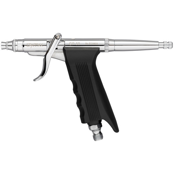 Allzweck-Spritzpistole mit Abzugshebel am Griff und seitlich angebrachten Metallbehältern (7 ml & 15 ml). Zum Anschluss an die Druckluftversorgung steht ein 1/8“-Gewinde zur Verfügung. Geeignet für alle Kompressoren und...