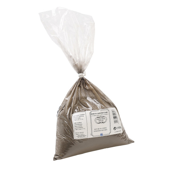 Der fein pulverisierte Asphalt wird während der Ätztechniken als Schutz auf die Bereiche der Platte aufgetragen, die im Säurebad nicht geätzt werden sollen.