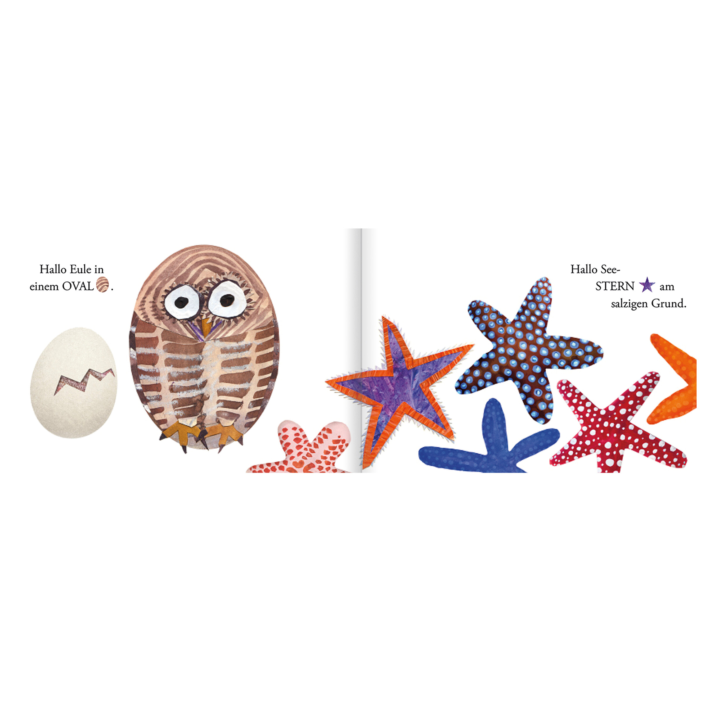 Mit diesem Papp-Bilderbuch lernen die Kleinsten die vielfältige Welt der Tiere kennen und entdecken dabei spielerisch Formen und Gestalten. Kugelrunde Eulenköpfe, dreieckige Fuchsohren und fünfzackige Seesterne tummeln sich auf den...