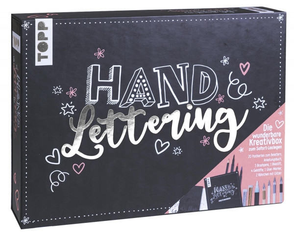 Die schön gestaltete Box enthält eine Grundanleitung für die ersten Schritte mit Übungsalphabeten und ein Postkartenblock mit teils vorgestalteten Karten in Schwarz und Weiß (je 10). Im Set befinden sich zudem 3 Brush Pens (Schwarz,...