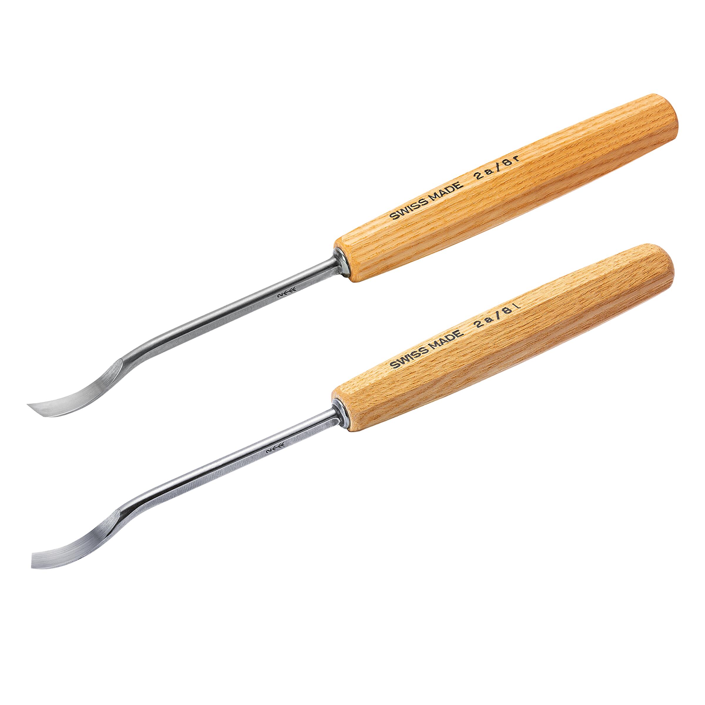 Schweizer Spitzenqualität aus legiertem Werkzeugstahl. Die Schnitzwerkzeuge sind innen gebrauchsfertig fein ausgeschliffen und poliert, daher leicht nachzuschleifen. Der mit pflanzlichen Ölen geölte achtkantige Eschenholzstiel mit Innenzwinge macht dieses Werkzeug zu einem unverwechselbaren Schweizer Spitzenprodukt. Profi-Werkzeug mit einer Klingenlänge von 120 mm und einer Gesamtlänge von 250 mm.