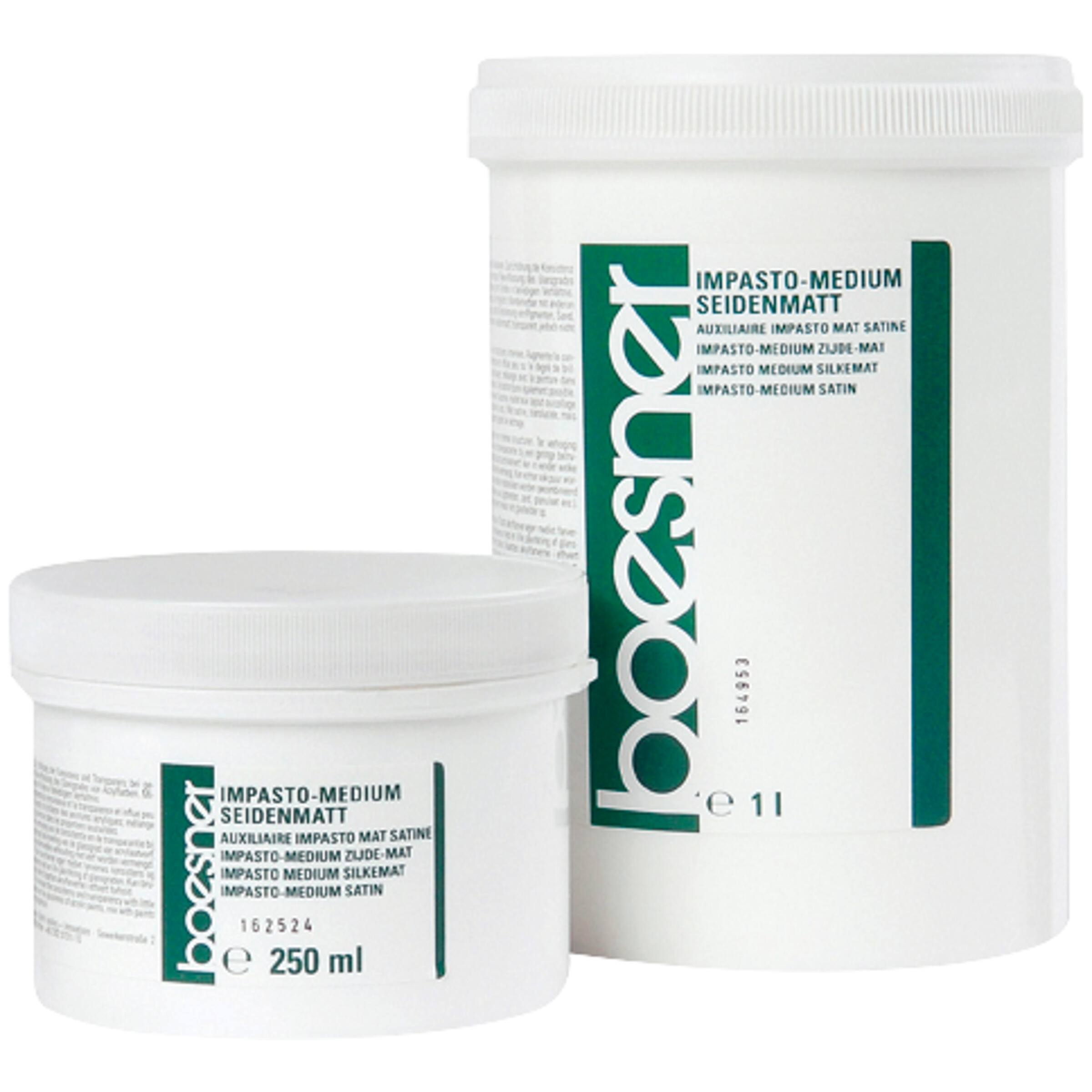 Ist eine markante Struktur des Farbauftrages gewünscht, verwendet man Impasto-Medium, um die Konsistenz und die Transparenz der Acrylfarbe zu erhöhen. Es lässt sich pur verwenden, kann in jedem Verhältnis der Acrylfarbe hinzugefügt oder mit anderen Materialien wie mit Pigmenten, Sand, Granulaten usw. kombiniert werden.