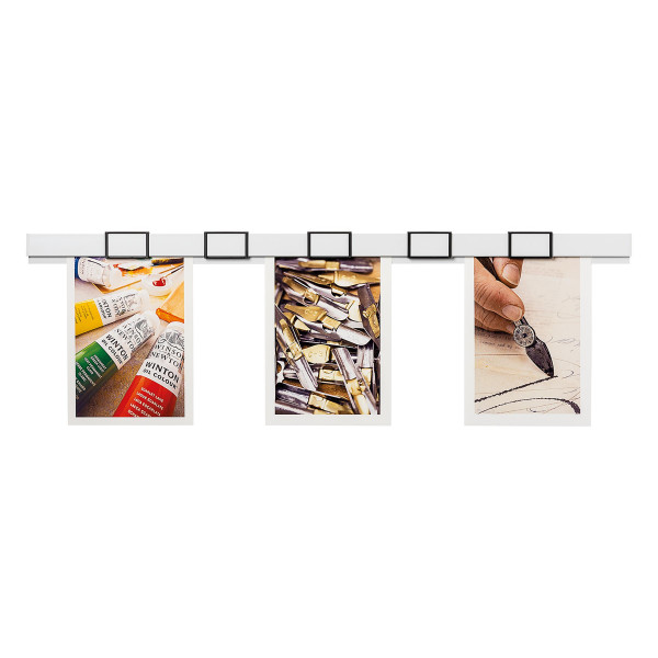 Mit Info Rail können Zeichnungen, Skizzen, Fotos, Dokumente und sogar bis zu 2 mm starker Karton stilvoll und ohne Beschädigungen an der Wand präsentiert werden. Befestigungsmaterialien wie Heftzwecken, Nägel und Klebeband sind damit obsolet. Die Werke lassen sich mittels einer 3-fachen Gummieinspannung ohne zurückbleibende Abdrücke in der Schiene fixieren und bei Bedarf schnell und einfach austauschen. Zum Anbringen werden die beiliegenden Click & Connect-Clips, auf welchen die Schiene befestigt wird, an der Wand montiert. Länge: 1 m, weiß, inkl. Endkappen und Befestigungsmaterial.