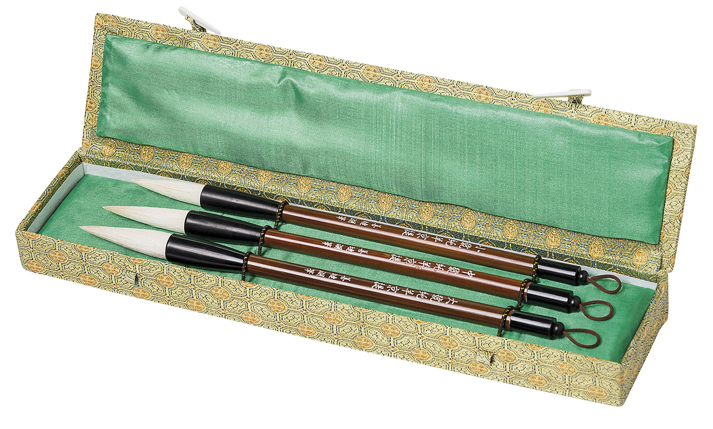 Die traditionell gebundenen Pinsel aus weichem Ziegenhaar sind sowohl für Kalligrafie als auch für Tuschemalerei geeignet. Der flexible Besatz hat eine hohe Farbaufnahmefähigkeit. Im Set enthalten sind drei Pinsel unterschiedlicher Größe mit Bambusstiel, verpackt in einer dekorativen Geschenkbox.