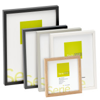 Mit ihrem leichten, zurückhaltenden Design sind die schlichten Aluminiumrahmen im 3er-Set z. B. gut für die serielle Hängung kleinformatiger Werke geeignet. Komplett inkl. 2 mm-Floatglas und MDF-Rückwand.