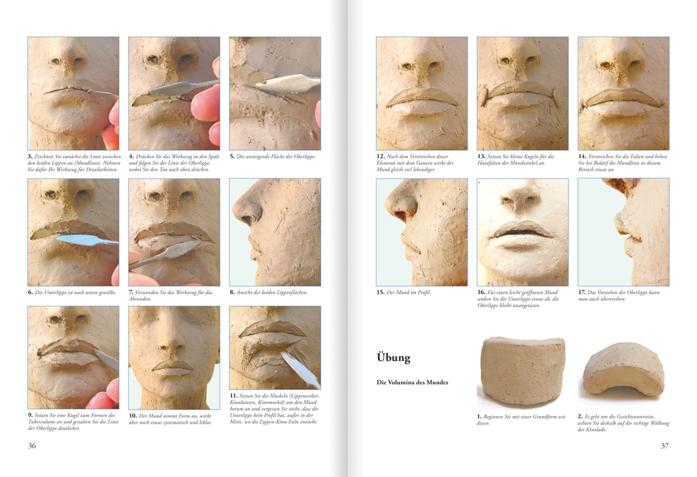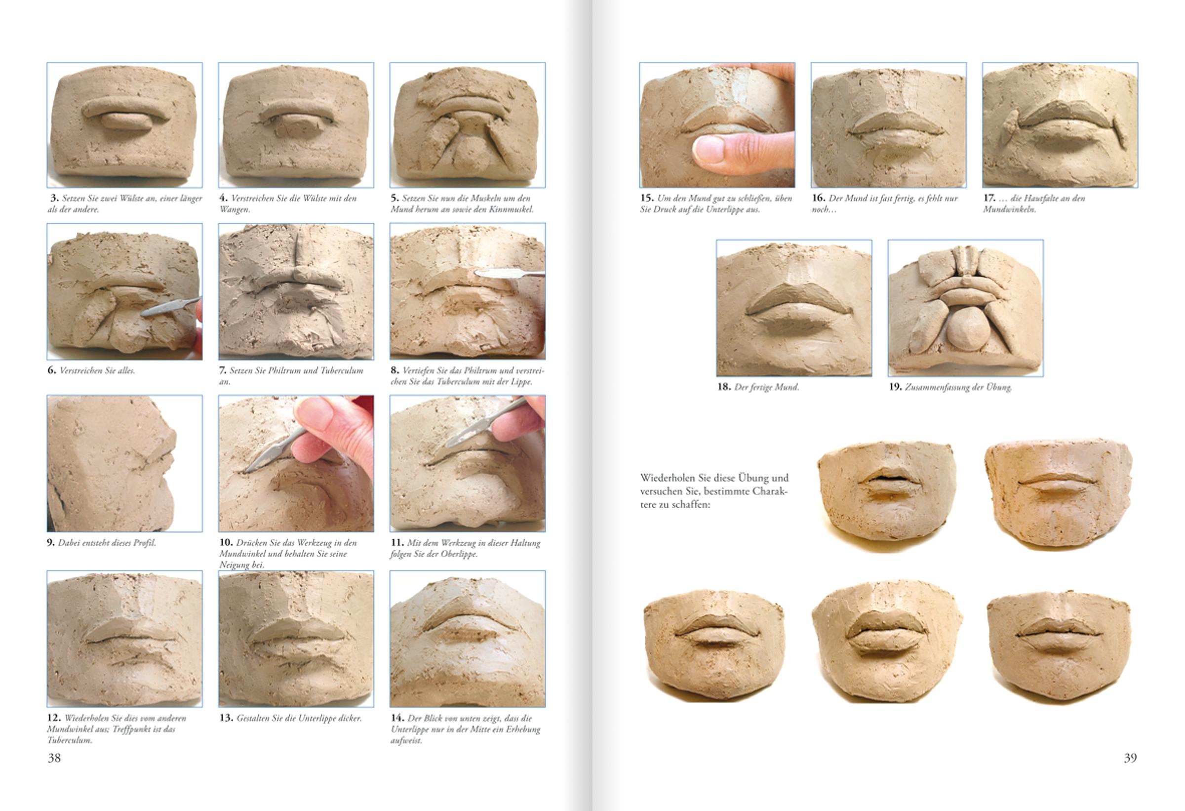 Ist die Form hergestellt, soll die Skulptur Persönlichkeit bekommen: Der Gesichtsausdruck wird zum wichtigsten Element, ob Kinder- oder Erwachsenengesicht, von Traurigkeit bis Freude. Das Buch gibt mit vielen Fotos und Zeichnungen...