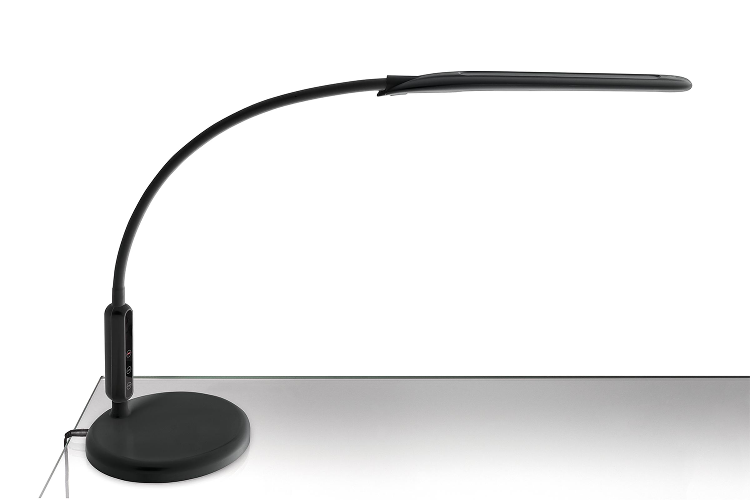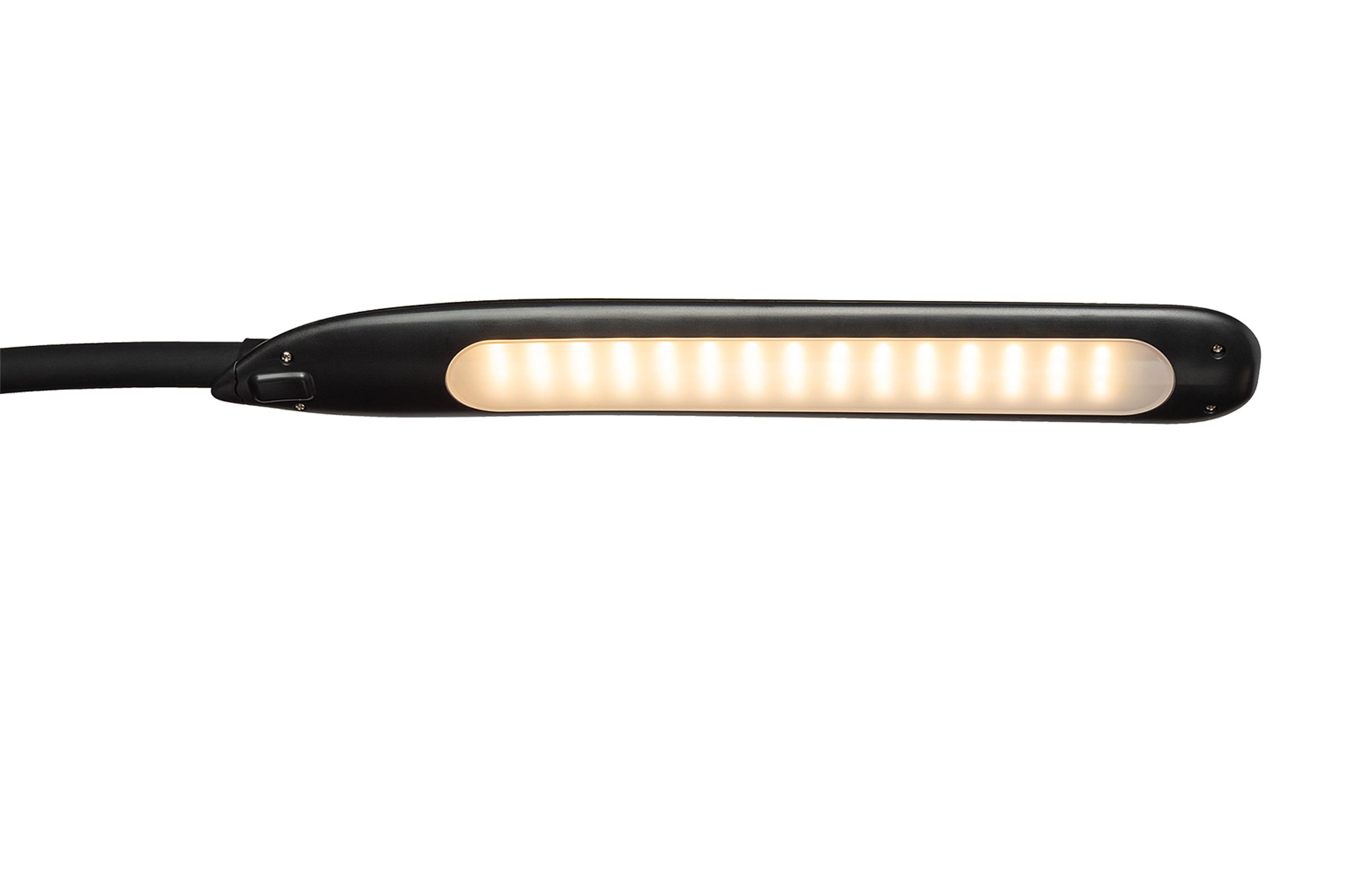 Die Artelumina LED-Atelierleuchte mit regulierbarer Farbtemperatur von Warm- über Neutral- bis Tageslichtweiß (3.000–6.000 Kelvin) und 5 Helligkeitsstufen spendet flimmerfreies Licht für die künstlerische Arbeit. Sie überzeugt mit einem sehr guten Farbwiedergabeindex (CRI) von > 90. Der breite Lichtabstrahlwinkel leuchtet den Arbeitsplatz optimal aus. Zusätzlichen Komfort bietet der durch den Schwanenhals dreh- und schwenkbare Leuchtenkopf. Die Artelumina LED-Atelierleuchte gibt es mit Klemmsystem oder mit stabilem Standfuß. Das Modell mit Klemmvorrichtung kann über einen Sensor am Leuchtenkopf bequem reguliert werden. Das Modell mit Standfuß verfügt über ein Bedienelement am Lampenhals. Die Künstlerleuchte hat eine Lebensdauer von bis zu 50.000 Stunden, LED 600 Im, 2.400 Lux/43 cm Abstand, 3.000–6.000 Kelvin, CRI > 90, Energieverbrauch 10 kWh/1.000 Std.