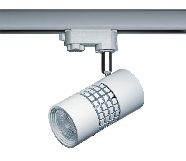 Die Strahler (15 W) aus weiß pulverbeschichtetem Aluminium sind in vier Abstrahlwinkeln erhältlich (15°, 20°, 38° und 60°). Jeder Strahler ist an der Rückseite stufenlos dimmbar, 90° neigbar und 350° schwenkbar. Neutrale Lichtfarbe (warmweiß 3.000 K) für eine ideale Farbwiedergabe. CE- und ROHS-zertifiziert. Einfache Montage mit 3-Phasen-Stromschienen. Hohe Lebensdauer von 50.000 Stunden. LED 1.170 Im, 3.000 Kelvin, CRI 90, Energieverbrauch 15 kWh/1.000 Std. Energieeffizienzklasse (Spektrum A-G): F.