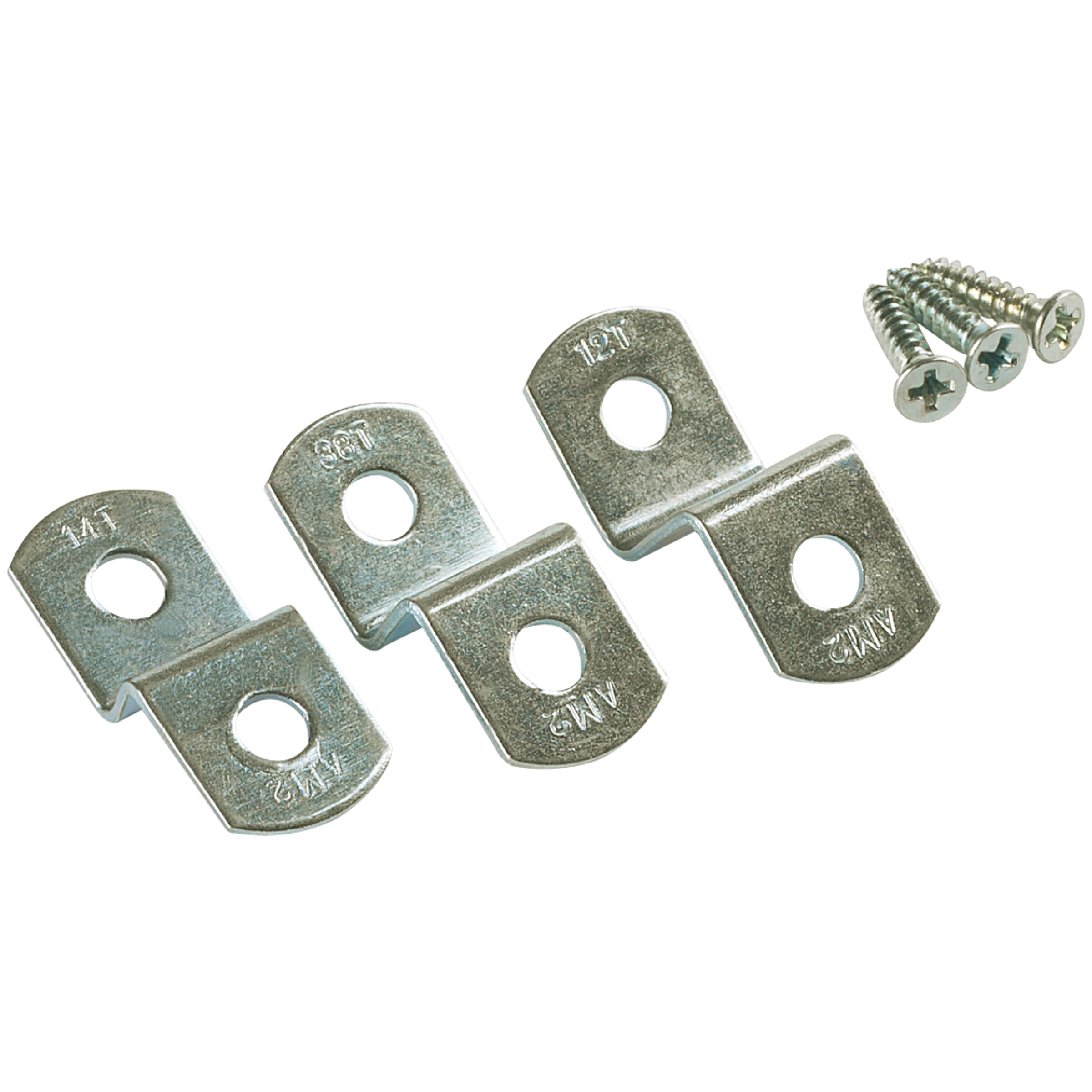 S-förmiger Leinwandhalter mit zwei Schraublöchern zur Befestigung eines Keilrahmens in einem Zier- oder Schattenfugenrahmen. Die Fixierung erfolgt mittels einer Schraube (das 2. Bohrloch ist optional) an der Rahmen- bzw. Keilrahmenrückseite. Stahl verzinkt, inkl. passender Schrauben (Ø 3,5 mm, Länge 9 mm) für die einfache Befestigung (je eine Schraube pro Leinwandhalter). Die Größenangabe bezieht sich auf den Abstand zwischen den beiden Schenkeln.