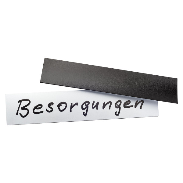Diese flexiblen Bänder mit weißer und glatter Oberfläche und einer Stärke von 0,85 mm sind leicht magnetisch, eignen sich hervorragend für Beschriftungen aller Art und haften auf allen Flächen aus Blech oder Stahl. Mit einer Schere lässt sich das Magnetband in beliebiger Länge von der Rolle abschneiden. Die Beschriftung erfolgt am besten mit einem abwischbaren Folienstift. Verwendungsorte: Büro, Atelier, Lager, Keller, Küche, Schule usw. Wir liefern 2 m-Rollen mit einer Bandbreite von 2 und 4 cm und Abschnitte in der Größe 20 x 10 cm. Die Abschnitte können beliebig zugeschnitten, bemalt und z. B. dank ihrer magnetischen Haftung auf Blechtafeln variabel platziert und verschoben werden.