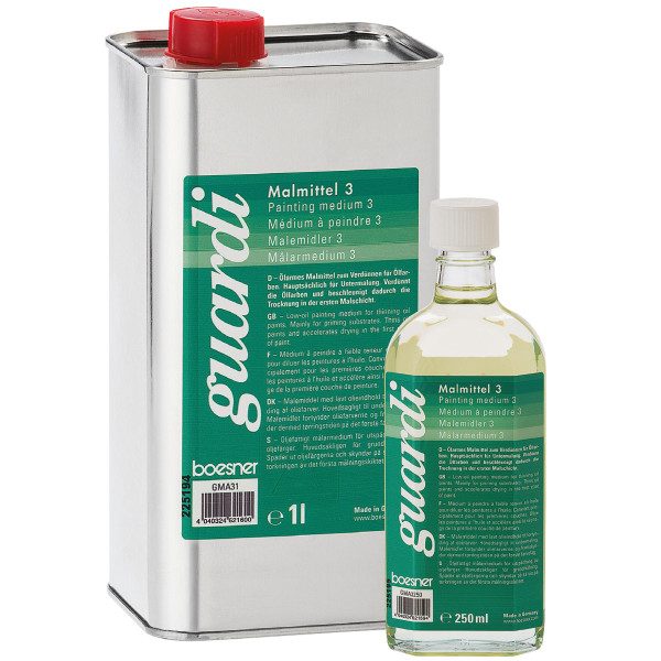 Ölarmes Malmittel zum Verdünnen für Ölfarben. Hauptsächlich für Untermalung. Verdünnt die Ölfarben und beschleunigt dadurch die Trocknung in der ersten Malschicht.