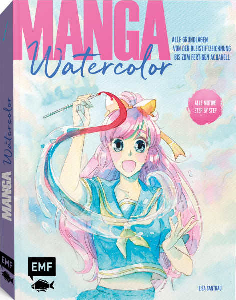 Lisa Santrau zeigt in 15-Minuten-Übungen, wie mit Aquarellfarben und -stiften die Lieblingsmotive der Mangafans zum Leben erweckt werden – Fantasy, Action, Romance Mystery und Historical, Kawaii, Chibi, Shojo, Shonen …