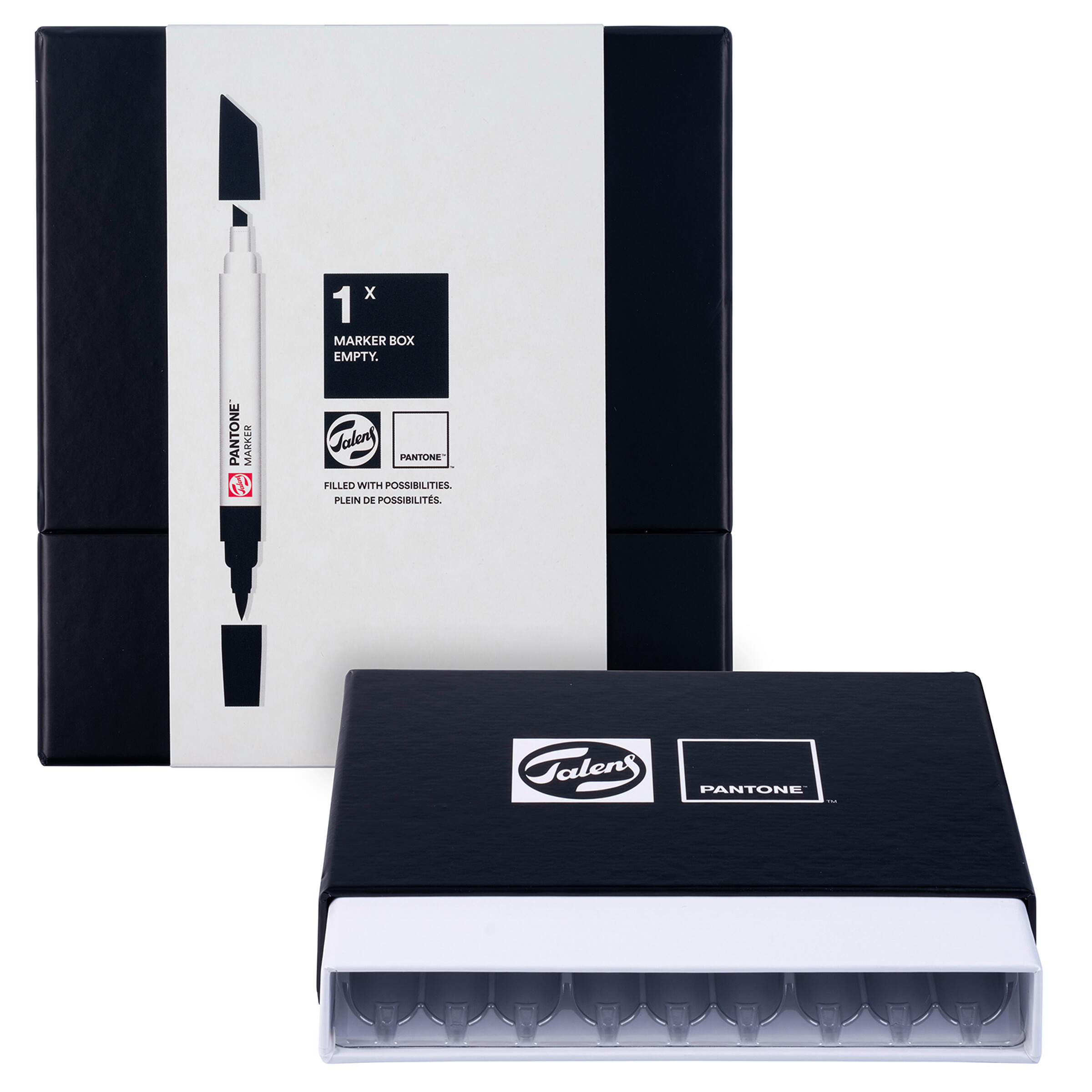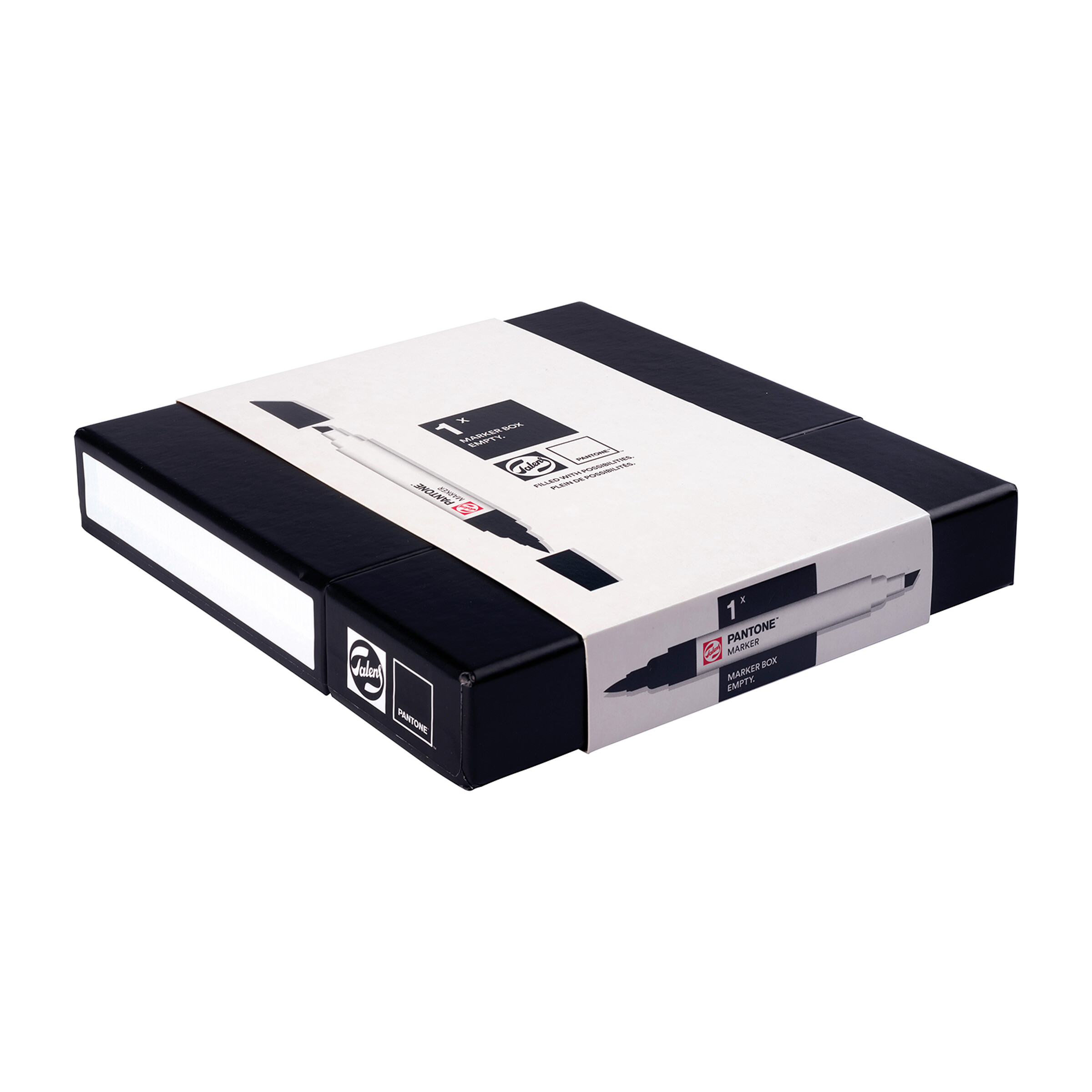 Leere Box aus stabilem Karton inkl. Kunststoff-Inlay, passend für neun Marker.