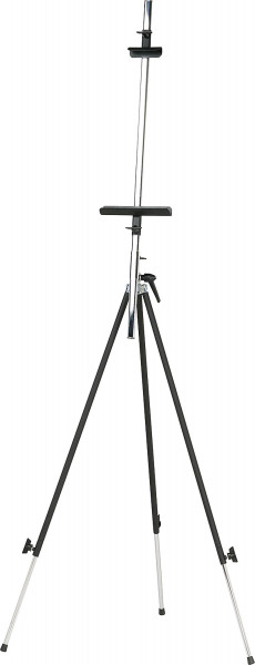 Diese standfeste und robuste Staffelei ist stufenlos höhenverstellbar und eignet sich gleichermaßen für die Arbeit im Atelier und in der Natur. Ihre ovale Bildhalterschiene ist für Bildformate bis zu 75 cm Höhe ausgelegt und lässt sich in jeder Schräglage fixieren – auch waagerecht, etwa für Aquarelle.