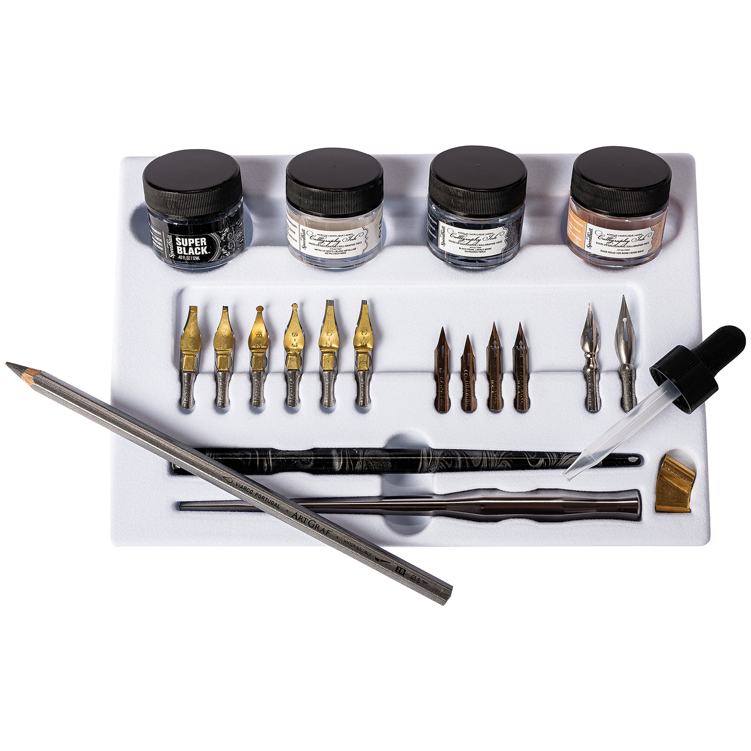 Das 21-teilige Set in einer stilvollen Aufbewahrungs- und Geschenk-Box enthält ausgewählte Produkte für den Einstieg in die moderne Kalligrafie oder die Vertiefung kalligrafischer Kenntnisse. Die Auswahl an Schreibfedern umfasst 2...