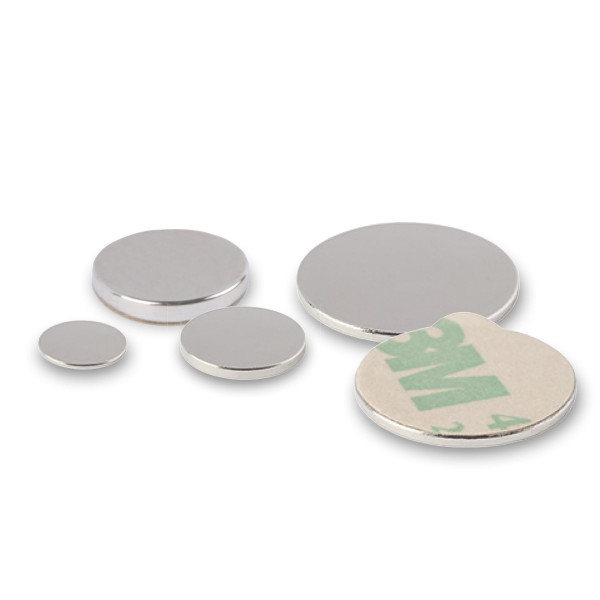 Selbstklebende Magnetplättchen z. B. für die Herstellung hochwertiger Verschlüsse von Mappen, Ordnern, Etuis usw. Die Scheibenmagnete sind paarweise verpackt, d. h. die zusammengehörigen Plättchen liegen sich jeweils gegenüber. Die Plättchen können aber auch einzeln verwendet werden.