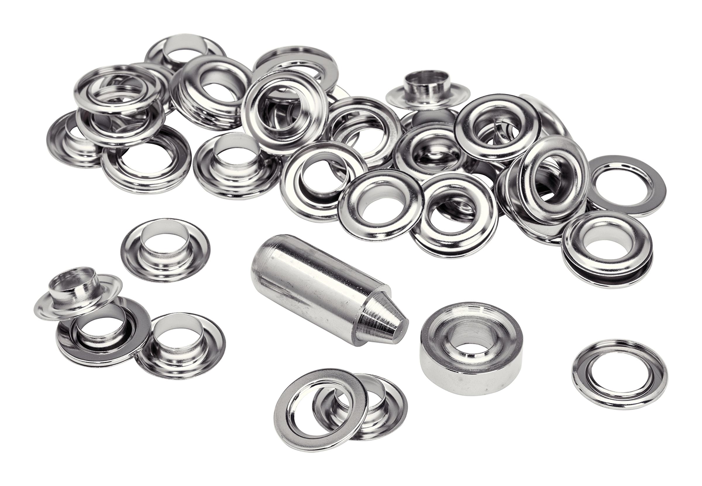 Ösen mit zweiteiligem Lochrand zum Einlegen in vorgelochtes Material. Perfekt für Planen, Öltuch, Plastikfolien, laminiertes Papier (je nach Grammatur bis zu 30 Blatt) usw. Die Ösen mit Ring sind belastbar und langlebig. Sie eignen sich...