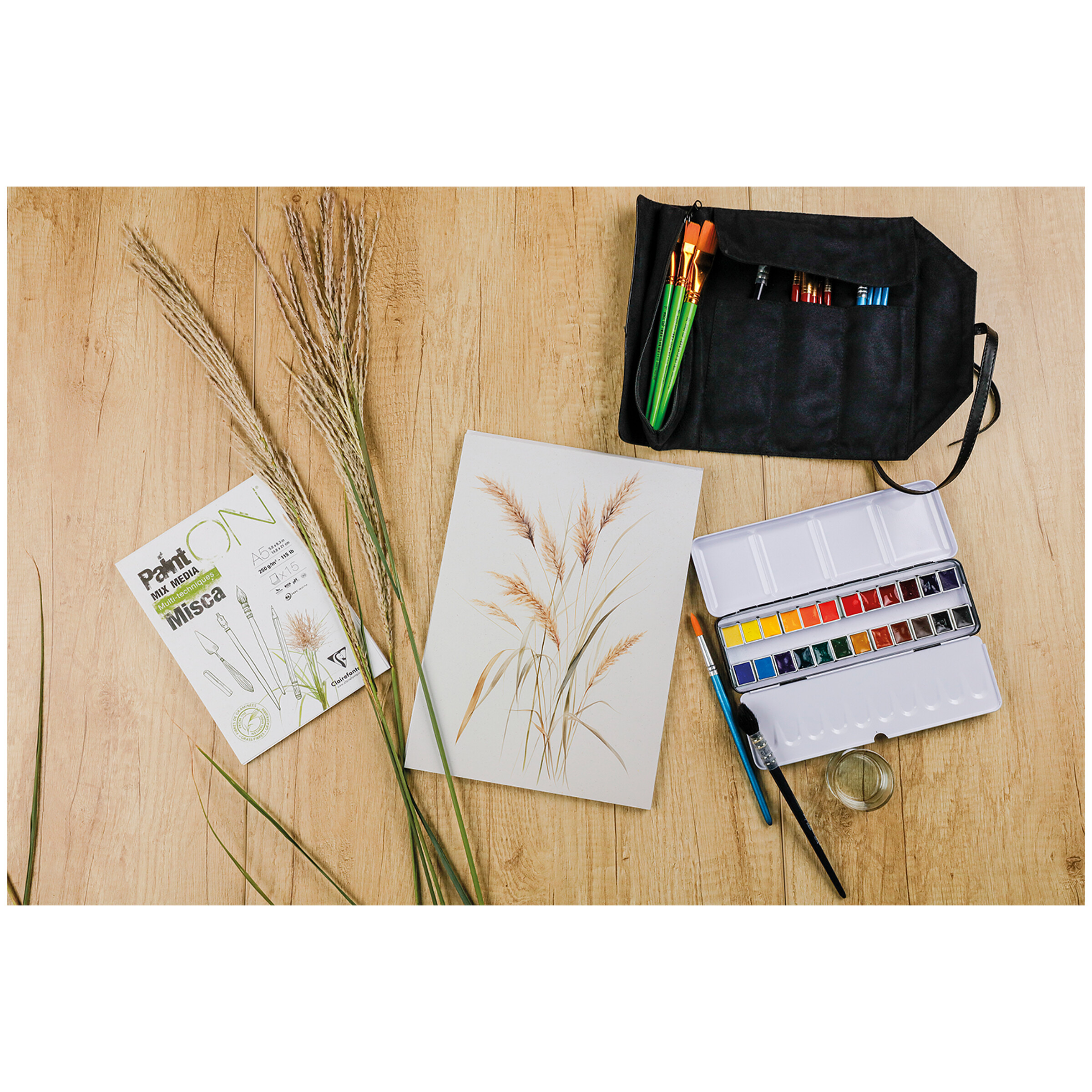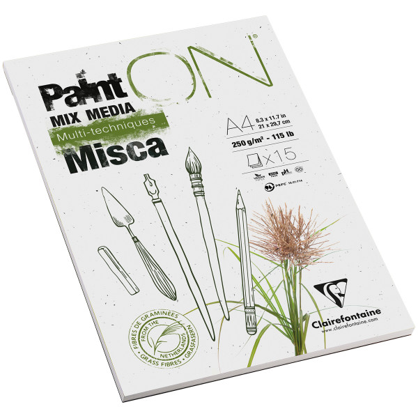 Das Papier mit Intarsien aus natürlichen Miscanthus-Fasern gibt Zeichnungen zusätzliche Tiefe und Charakter. Paint On Multitechnik ist eine echte Alternative zu Leinwand, Karton oder Aquarellpapier. Säurefrei und PEFC-zertifiziert.
