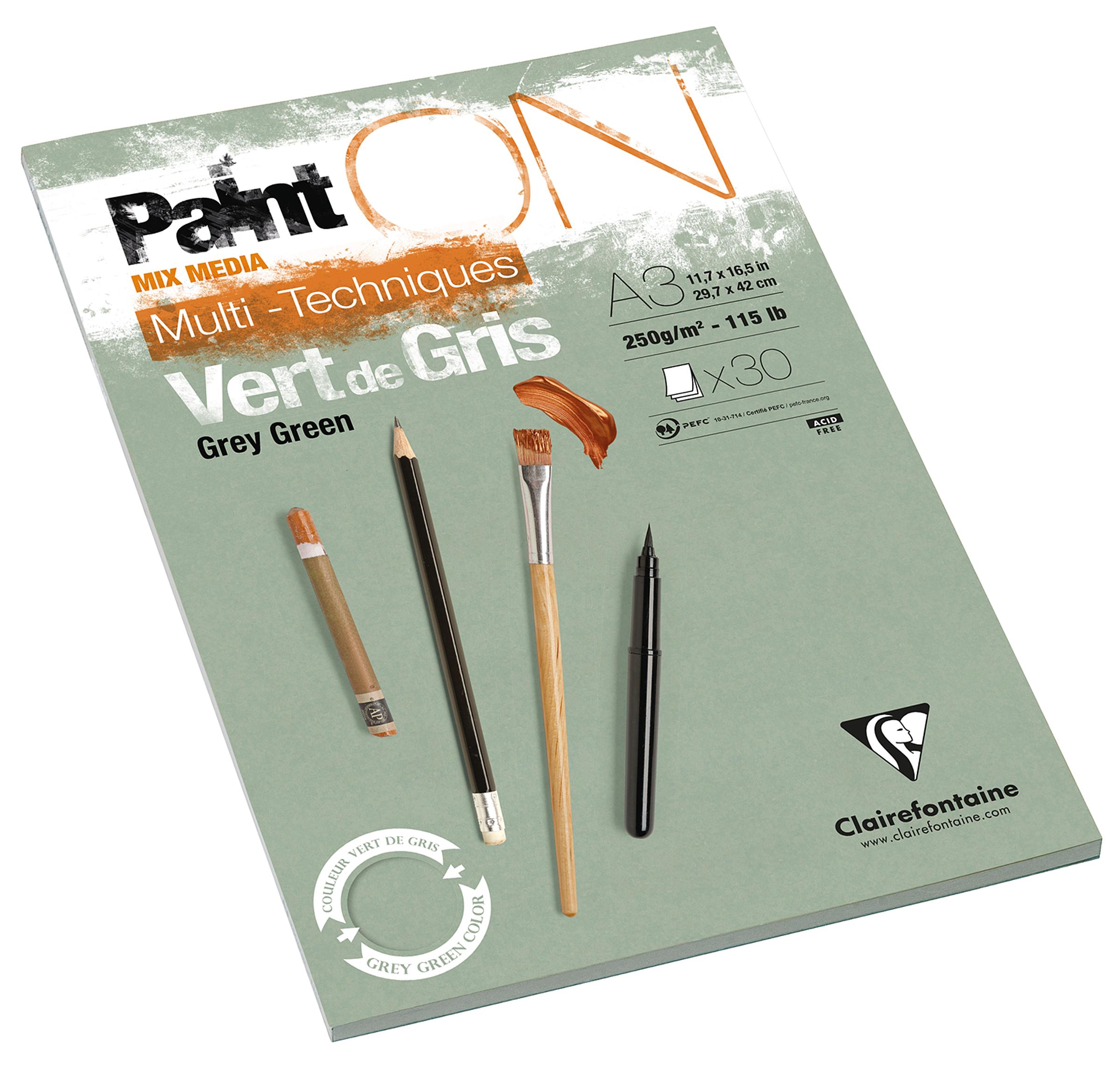 Clairefontaine Paint On Vert de Gris Multitechnik-Papier – grüngrau, rau