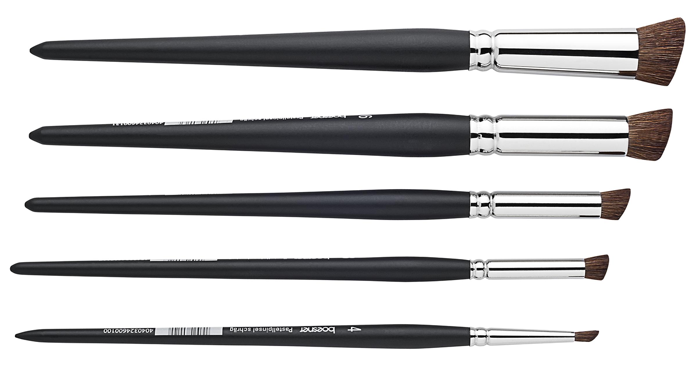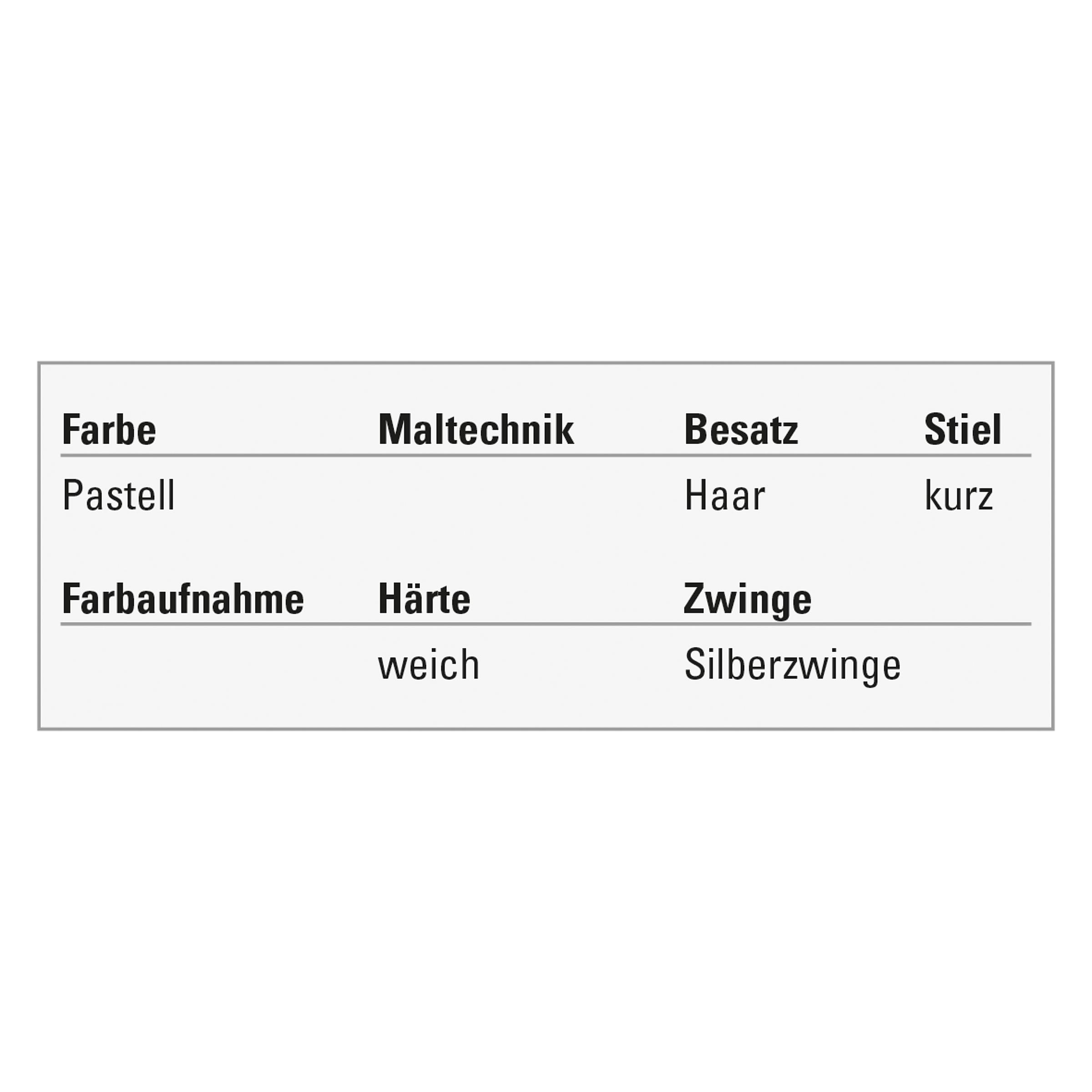 Abgeschrägter Pastellkreidenpinsel mit Ponyhaar für das Verblenden von Pastellkreide. Durch das weiche Naturhaar wird der Kreidestaub gut aufgenommen und Kratzer werden vermieden. So lassen sich weiche Farbübergänge und Schattierungen einfach erzeugen. Hochwertige Ausführung mit nahtloser Silberzwinge und kurzem, matt schwarz lackiertem Stiel.