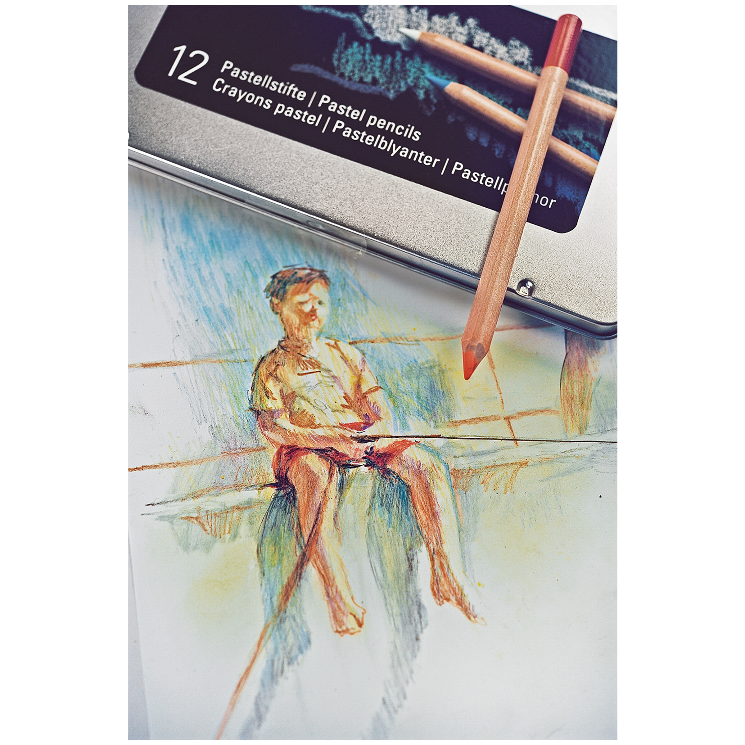 Die fettfreien, hoch lichtechten Pastellstifte mit holzgefasster, 5 mm starker Mine sind für Detailarbeiten und schnelle Skizzen gleichermaßen gut geeignet. Der Farbauftrag ist leicht verwisch- und mischbar. Die Stifte sind 175 mm lang (Ø 8 mm), frei von giftigen Inhaltsstoffen und mit einer Farbmarkierung am Stiftende gekennzeichnet.