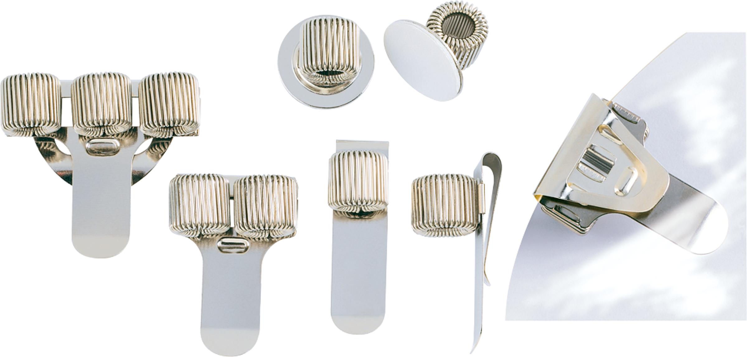 Der praktische Stifthalter lässt sich fest und sicher an Notiz- oder Zeichenbüchern fixieren. In die runden Federstahlspiralen passen alle herkömmlichen Stiftdurchmesser.