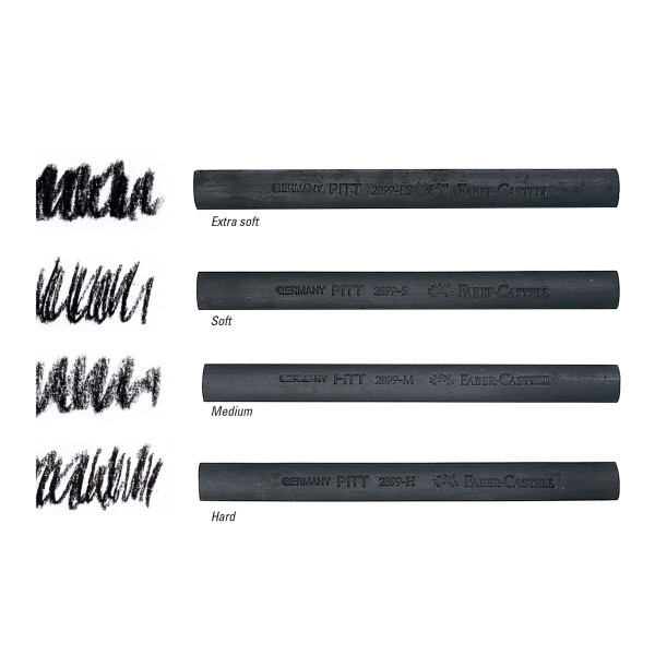 Sehr bekannte und beliebte Reißkohle, fettfrei. Zur Herstellung werden Holzkohle, Ton und Bindemittel gepresst und gebrannt. Je nach Mischung ergeben sich die verschiedenen Härtegrade. Der Schwärzungsgrad ist höher als bei natürlicher Zeichenkohle. Besonders zur Vertiefung von Schatten und Abgrenzungen geeignet. Made in Germany.