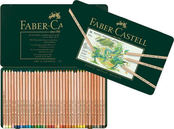 Der Pastellstift hat eine fettfreie Pastellmine, die vollständig verwischbar ist und daher anschließend fixiert werden muss. Die insgesamt 60 Farbtöne sind hochpigmentiert, leuchtkräftig und besitzen eine ebenso ausgezeichnete Lichtbeständigkeit wie Farbstabilität beim Fixieren. Die kompakte Pastellmine überzeugt durch ihre kräftige Farbgabe, ohne sich dabei extrem schnell abzunutzen. Pitt Pastellstifte eignen sich besonders für Linien, Schraffuren, feinste Farbverläufe, aber auch für großflächiges Zeichnen. Das Holz der Stifte ist aus zertifizierter nachhaltiger Forstwirtschaft (Eco Pencil). Lackiert mit umweltfreundlichem Wasserlack. Länge 17,3 cm, Ø 7 mm.