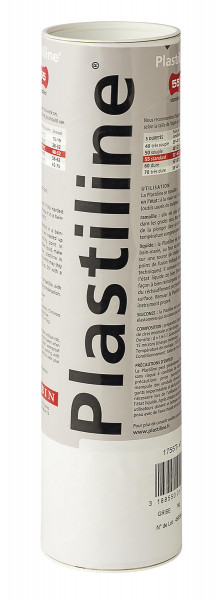 Professionelle Modelliermasse für vielseitige Anwendungen, z. B. für die Erstellung von Plastiken, zur Restaurierung von Kunstwerken oder Möbeln, für Abgüsse, zur Messung von Reliefs oder für Reproduktionen (Genauigkeit 1/10 mm). Die feinkörnige, graue Masse trocknet nicht aus, das Modell kann immer wieder verändert werden, ohne dass bleibende Übergänge entstehen. Plastiline ist im ursprünglichen, aufgeweichten oder flüssigen Zustand einsetzbar. Das Material lässt sich mit den Händen, einer Heißluftpistole oder einem Fön weich machen, beim Abkühlen im Kühlschrank härtet es wieder aus. Die Masse behält ihre Festigkeit bei und hinterlässt keine Rückstände beim Trocknen − eine ideale Alternative zu üblichen Abgussmaterialien wie Gips, Zement, Silikon etc. Dank der hohen Stabilität tritt nach der Verarbeitung bei konstanten Temperaturen keine Materialverformung auf. Plastiline ist auch mit weicherer Konsistenz bzw. geringerem Härtegrad verfügbar. In dieser Variante eignet sich das Material ideal für den Einsatz im therapeutischen Bereich.