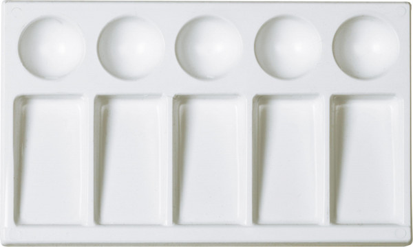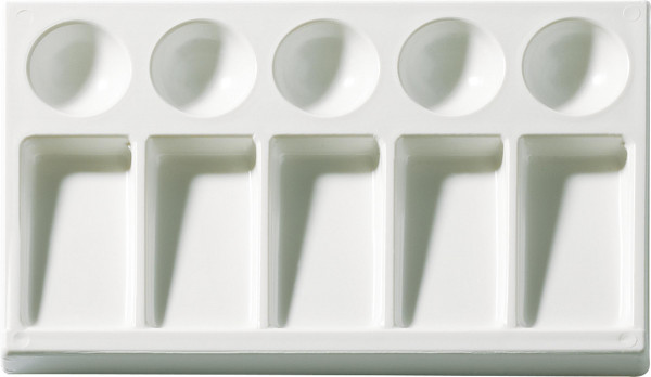 Palette mit fünf runden und fünf rechteckigen Vertiefungen. Maße: ca. 11 x 19 x 2 cm.