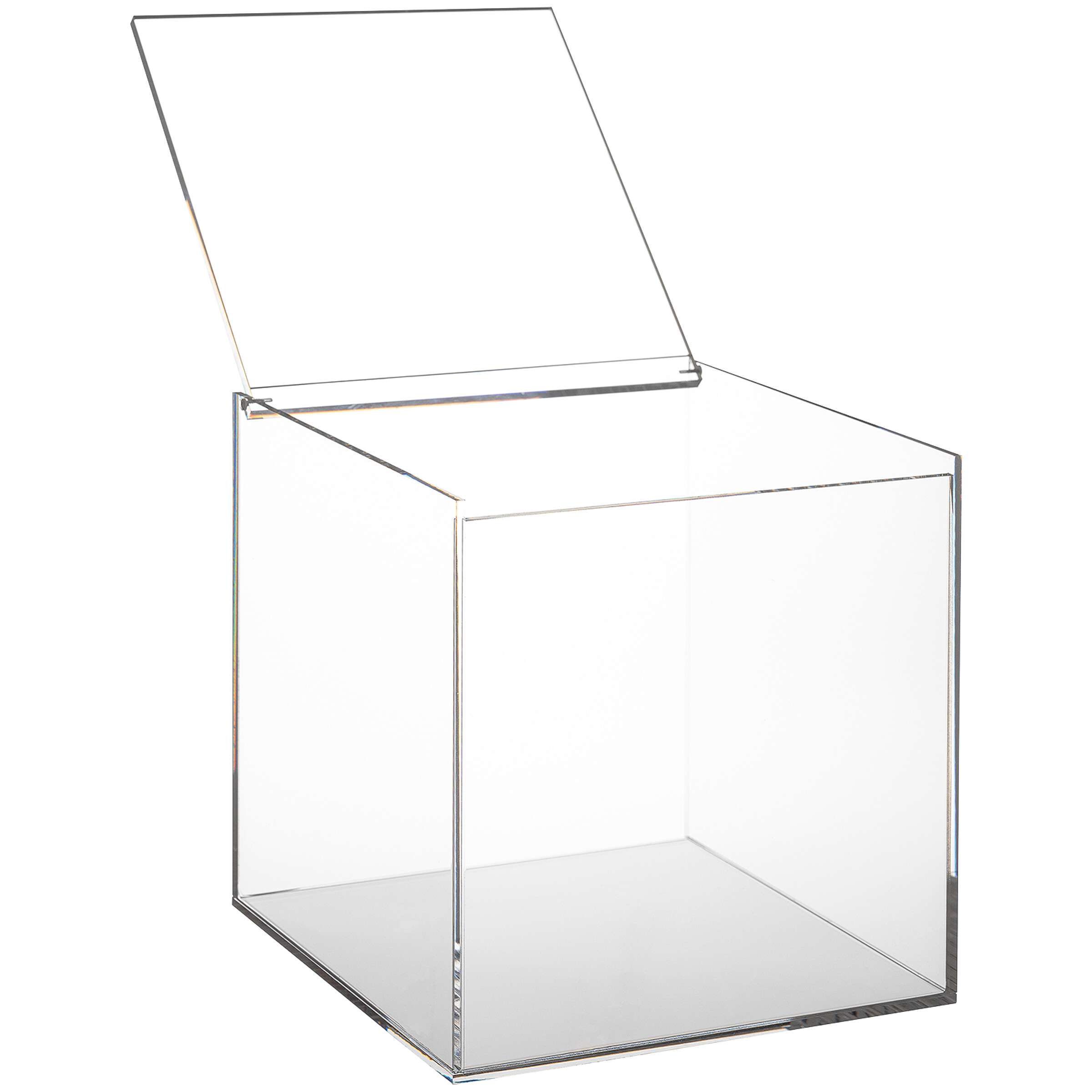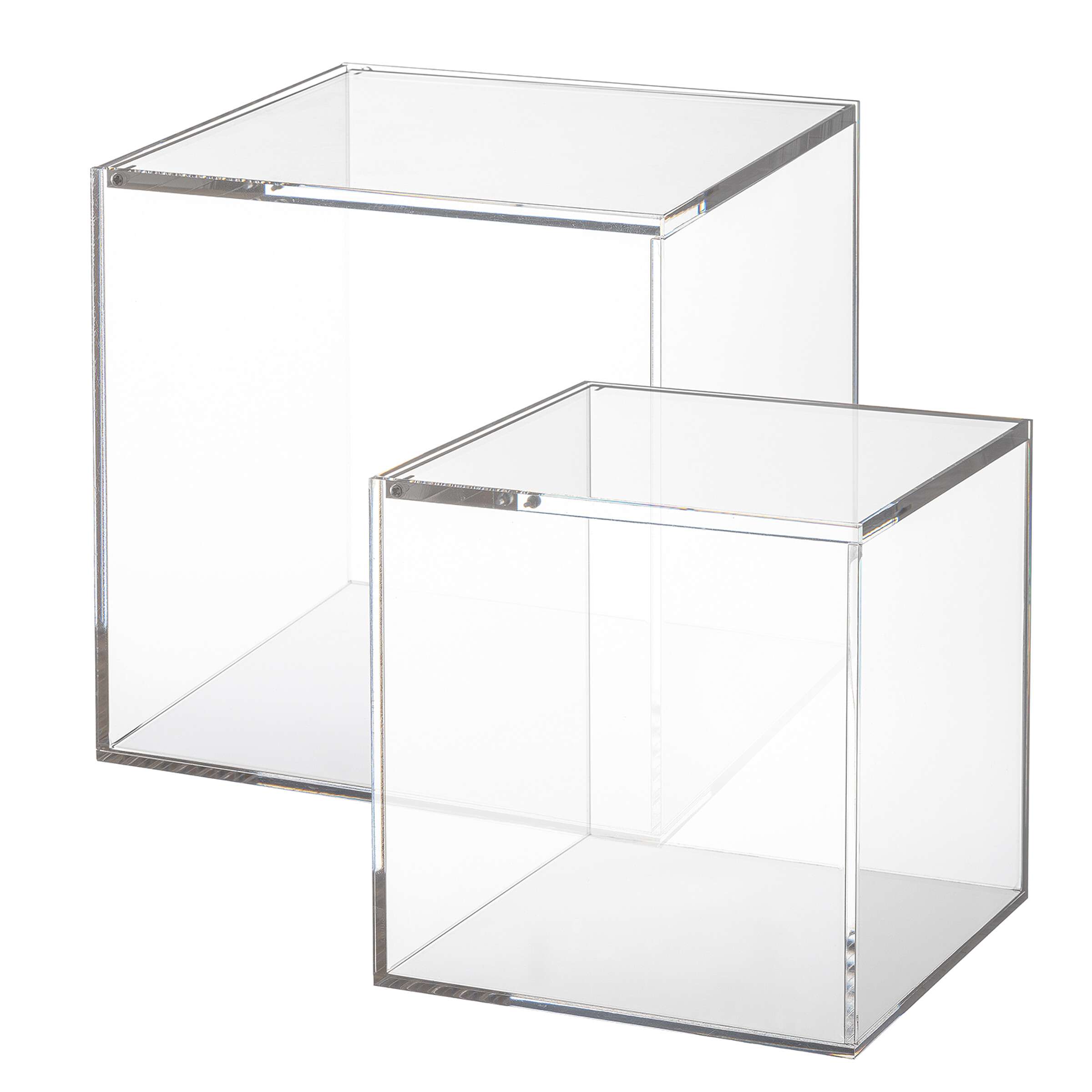 Präsentation mit perfekter Rundumsicht für kleine Skulpturen, Objekte oder liebgewonnene Dinge: Der Würfel besteht vollständig aus klarem Acrylglas und verfügt über einen klappbaren Scharnierdeckel. Das 3 mm bzw. 5 mm (Deckel) starke Material ist rundum auf Stoß sauber und unsichtbar kantenverklebt. Bei farbneutraler Durchsicht und hellen Glaskanten wird das jeweilige Exponat perfekt in Szene gesetzt. Darüber hinaus lassen sich die Präsentationskuben z. B. auch als attraktive Aufbewahrungslösung in gestalterisch anspruchsvollen Umgebungen nutzen.