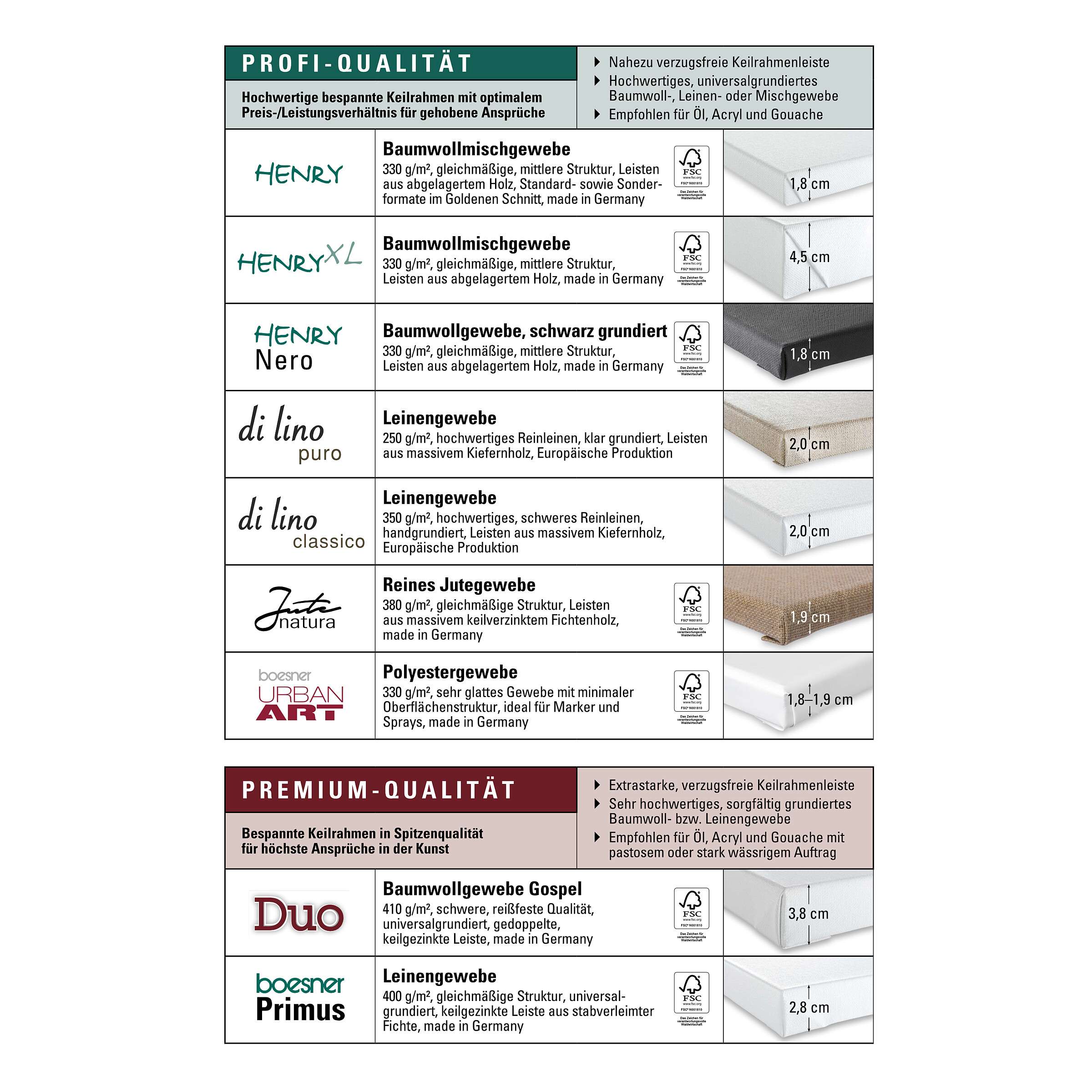 Leinen klar grundiert – solide Qualität