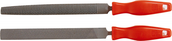 Das Set beinhaltet: eine flache Mehrzweckfeile mit Spezialhieb und eine Halbrundraspel mit Raspelhieb 2. Geeignet für Stahl, Bunt- und Weichmetalle, Kunststoffe und Holz. Raspel nicht für Stahl. Hieb-länge 20 cm, Breite 20 mm. Mit roten...