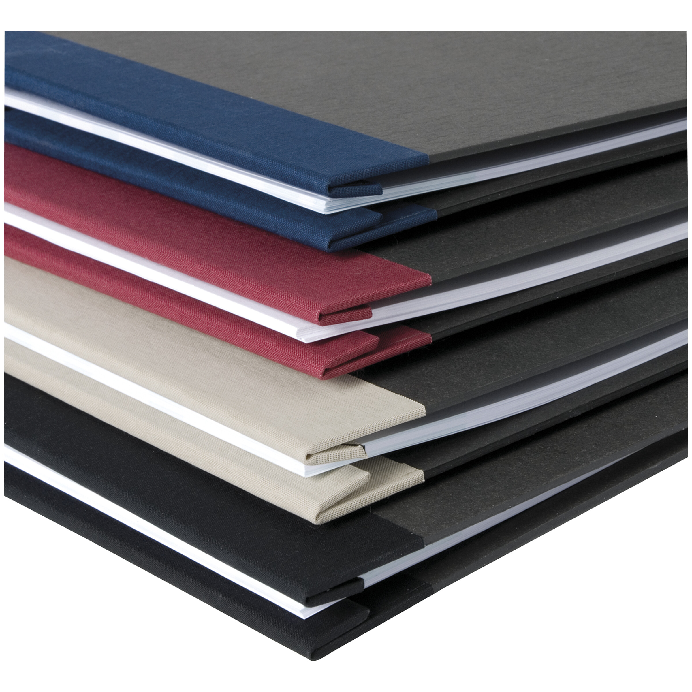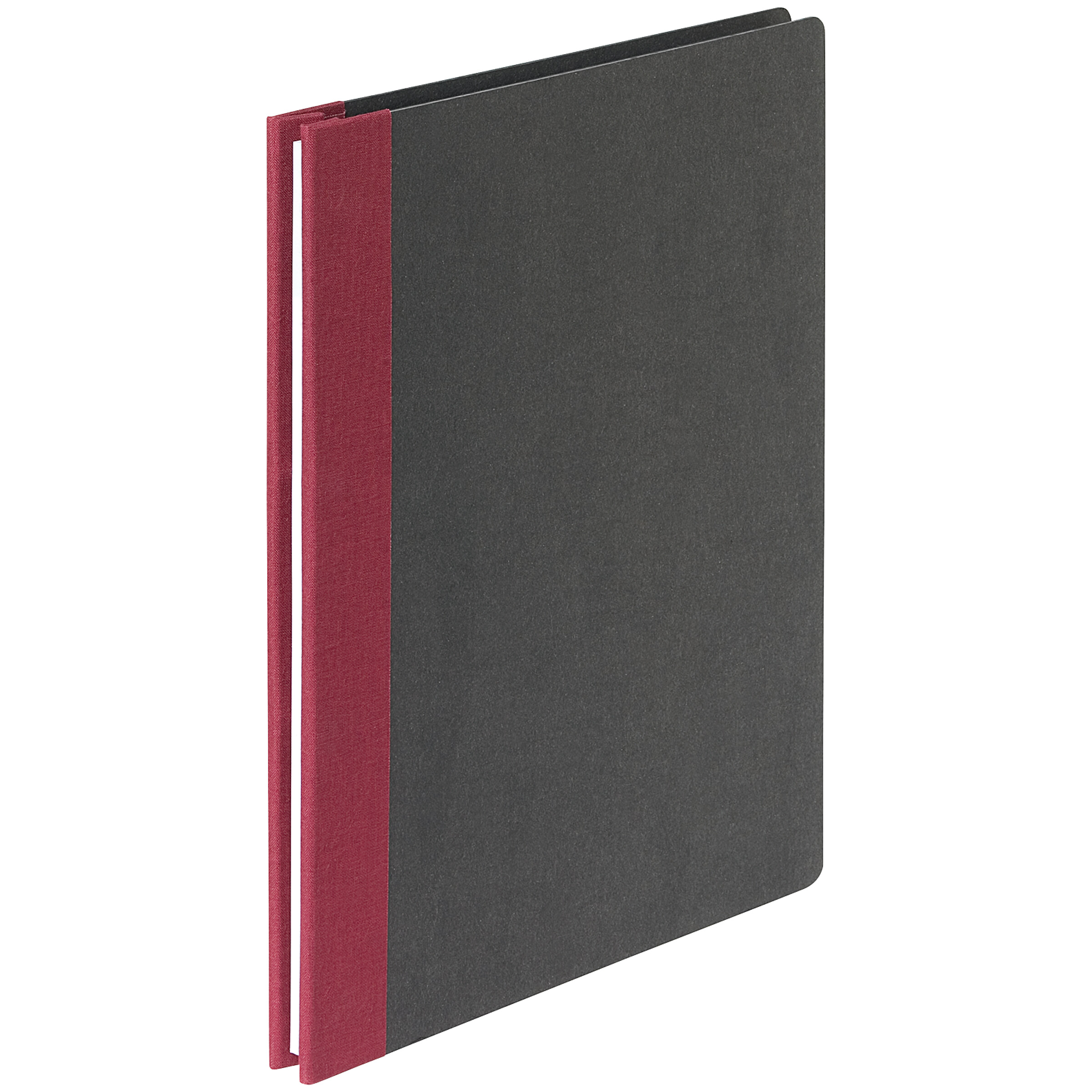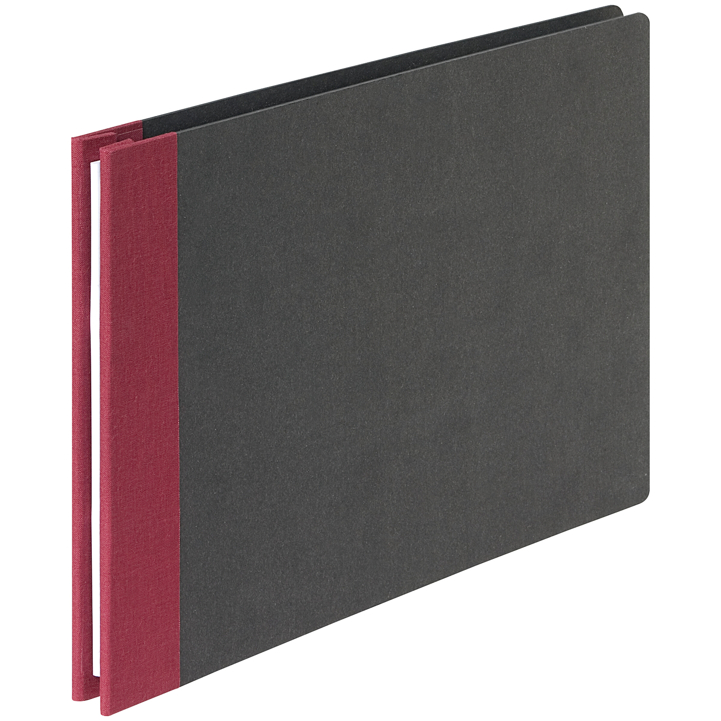 Buchbinderqualität. Die Deckel bestehen aus einer anthrazitfarbenen, 2 mm starken Hartpappe. Die Ecken der Mappe sind abgerundet, der Rücken ist mit einem Mattgewebe bezogen. Die Bindung besteht aus zwei vernickelten Buchbinderschrauben,...