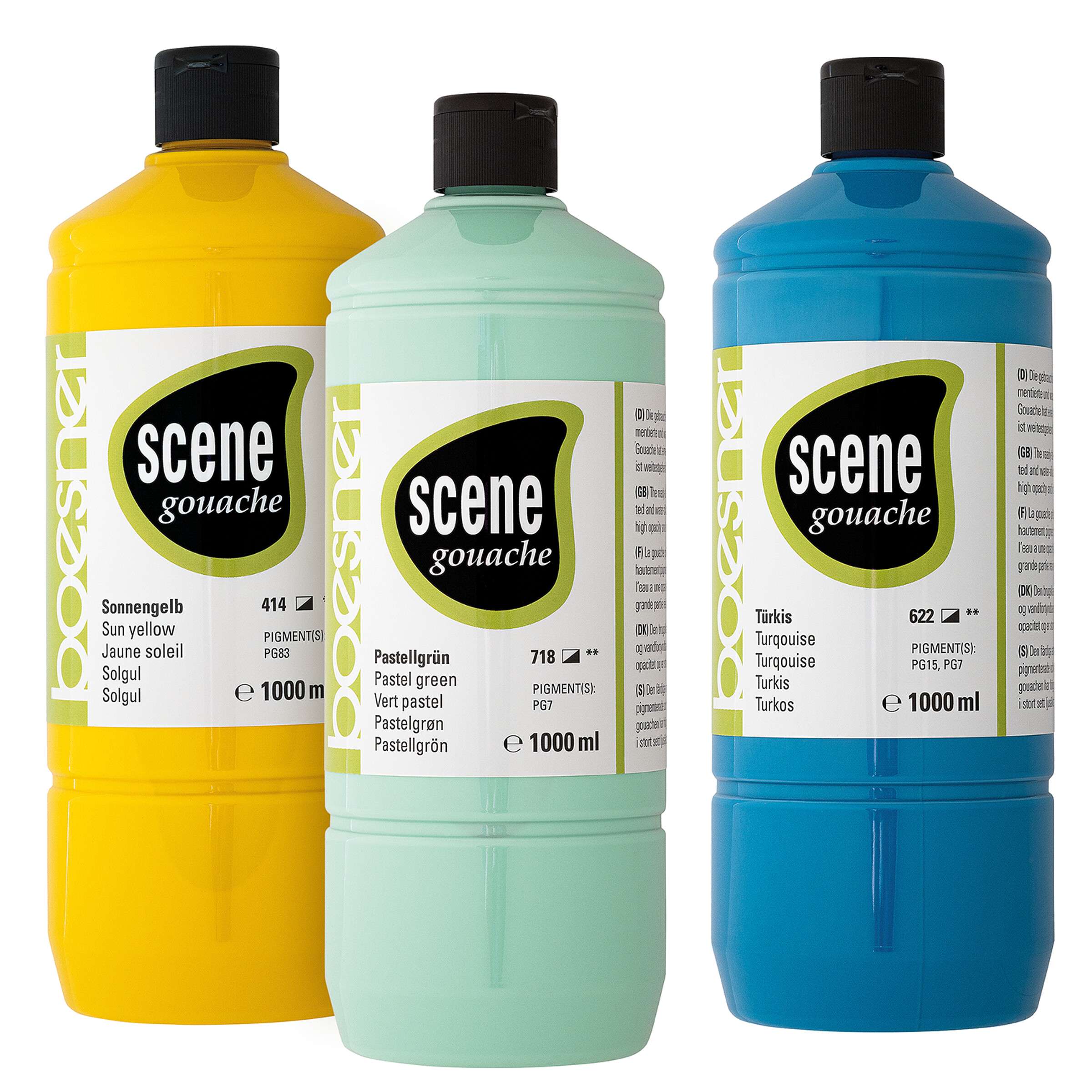 Flüssige, hochpigmentierte Gouache in hervorragender Basis-Qualität, mit hervorragender Deckkraft für alle leicht saugenden Untergründe wie Papier, Karton der Holz. Die gebrauchsfertige Farbe trocknet matt auf, ist wasserverdünnbar und nach dem Trocknen wiederanlösbar. Als perfektes Medium für spontane Entwürfe, großflächige Farbaufträge oder den Einsatz im kunstpädagogischen Bereich ist Scene Gouache besonders vielseitig und unkompliziert in der Anwendung. Das für eine Gouache ungewöhnlich breite Farbspektrum von 27 Tönen, davon 19 Einpigmenttöne, beinhaltet 6 Pastelltöne sowie Gold und Silber. Ideal für Vielverwender.