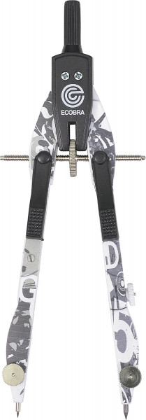 In einem jungen Design. Komfortable Ausführung, über Druckhebelsystem mit automatischer Spindelfixierung und Feineinstellung über Mitteltriebschraube und 2 Kniegelenken. Zirkellänge 165 mm, Arbeitsbereich bis Ø 330 mm. Bleibüchse, im Klarsichtetui. In 2 Ausführungen. Material: Zink-Druckguss.