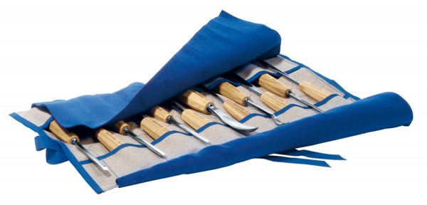 Das Set im praktischen Einstecketui aus robustem Naturleinen zum Zusammenrollen, mit Bändern zu verschließen, beinhaltet 12 der gebräuch­lichs­ten Profimesser: H1/8, H1S/8, H5/8, H5/20, H7/6, H7/14, H7L/20, H8/4, H8a/10, H9/10, H11/3, H12/6.