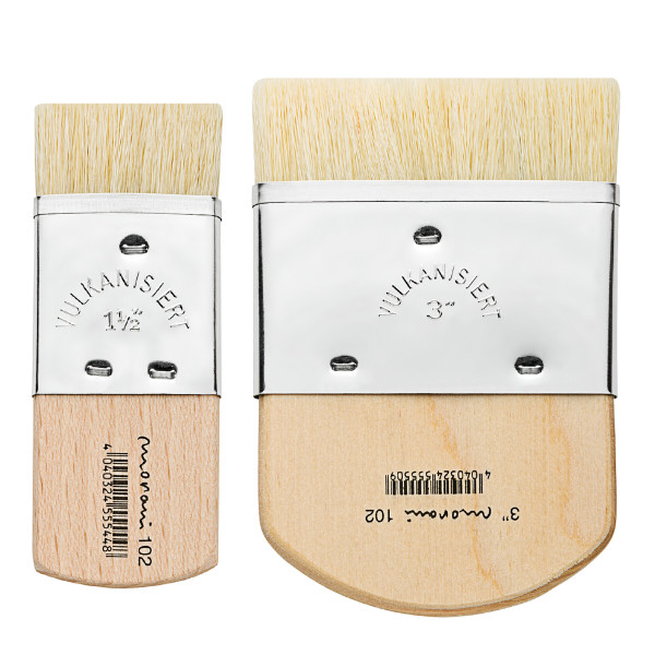 Universalpinsel (Modler) mit kurzen weiß gebleichten Borsten und kurzem Segmentbogen-Stiel. Made in Germany.