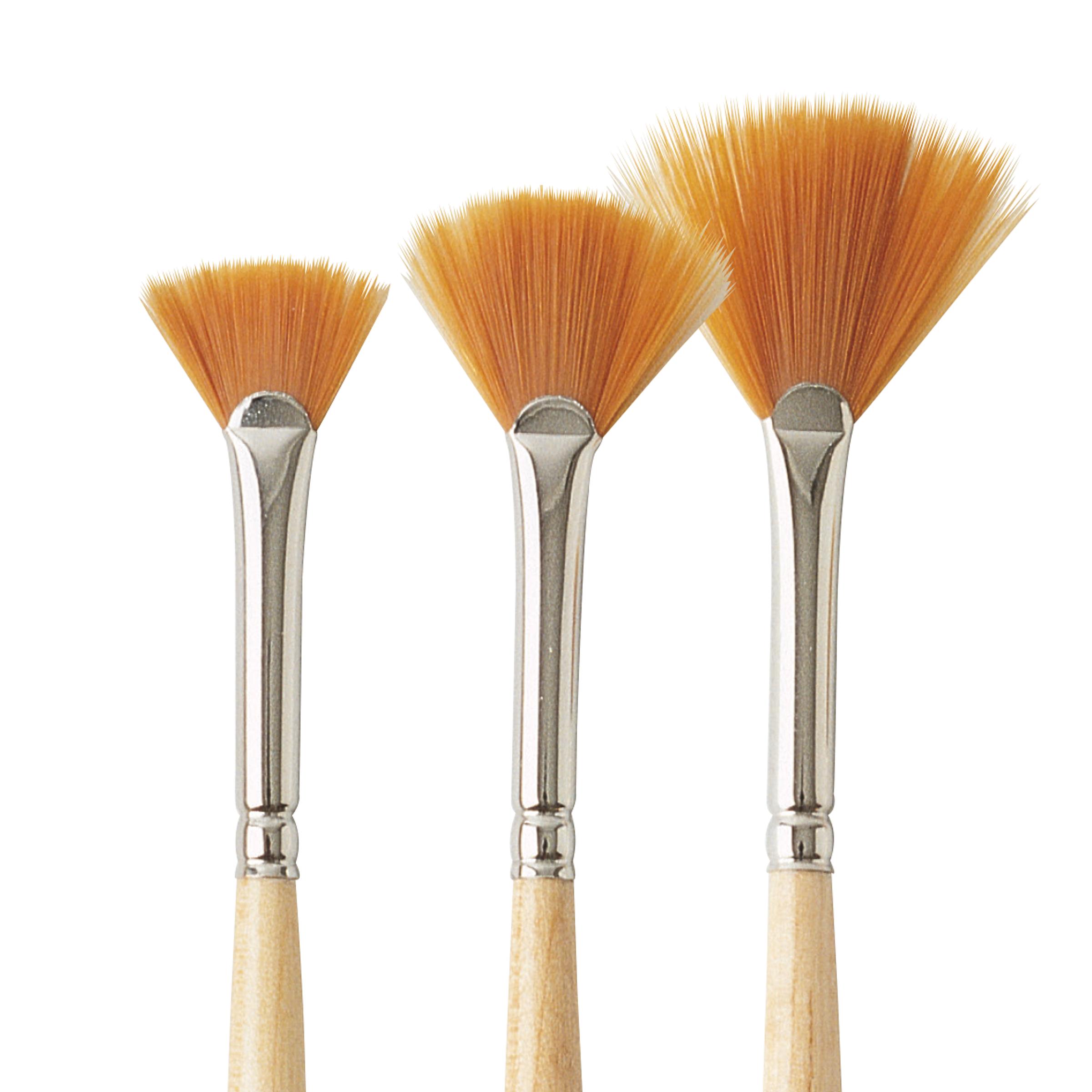 Fächerpinsel in extra kleinen Größen mit feinsten Synthetikhaaren. Nahtlose Silberzwinge, transparent lackierter Stiel. Made in Germany.