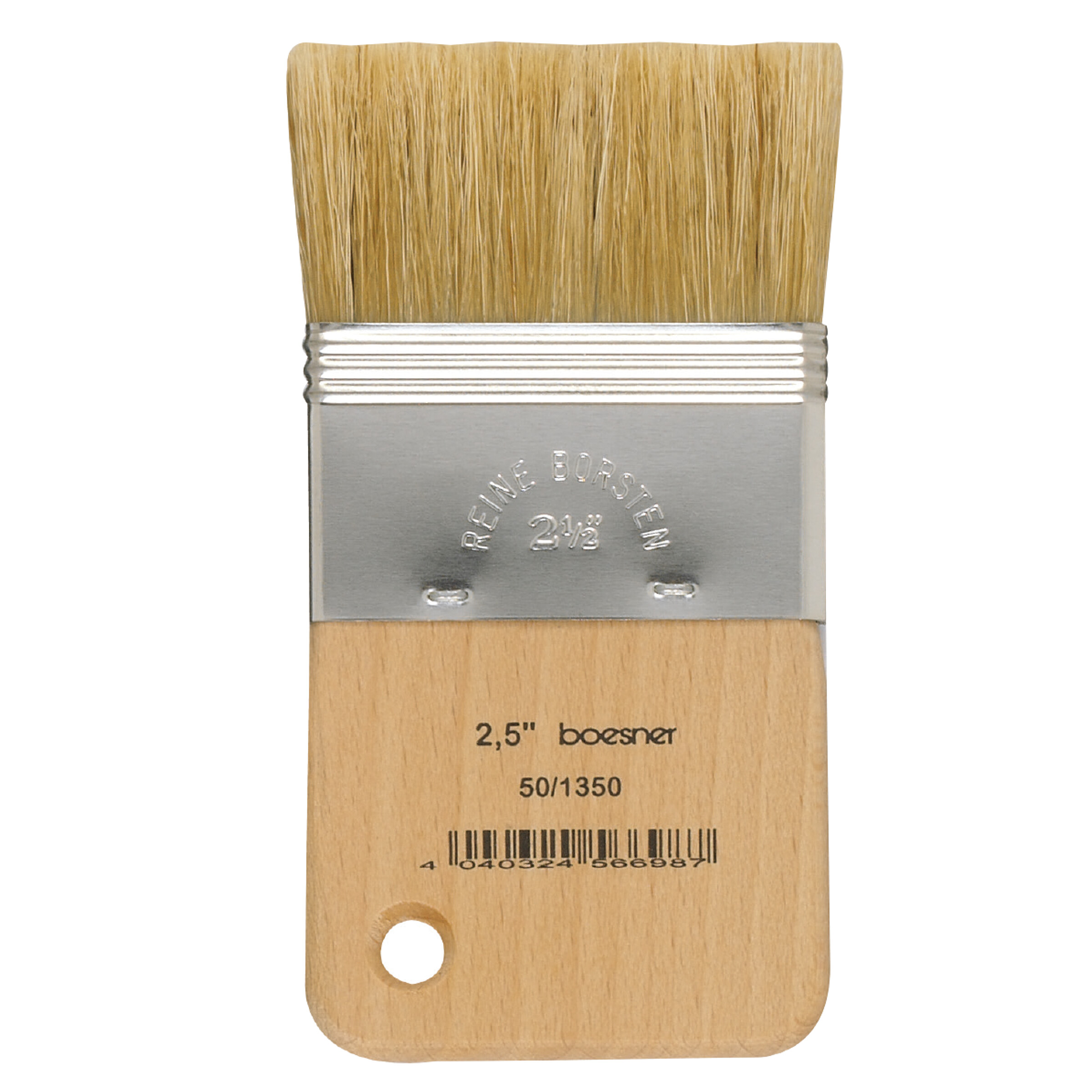 Universalpinsel, handgefertigt, naturweiße Chinaborste, kurzer Paddelstiel mit Loch zum Aufhängen. Made in Germany.