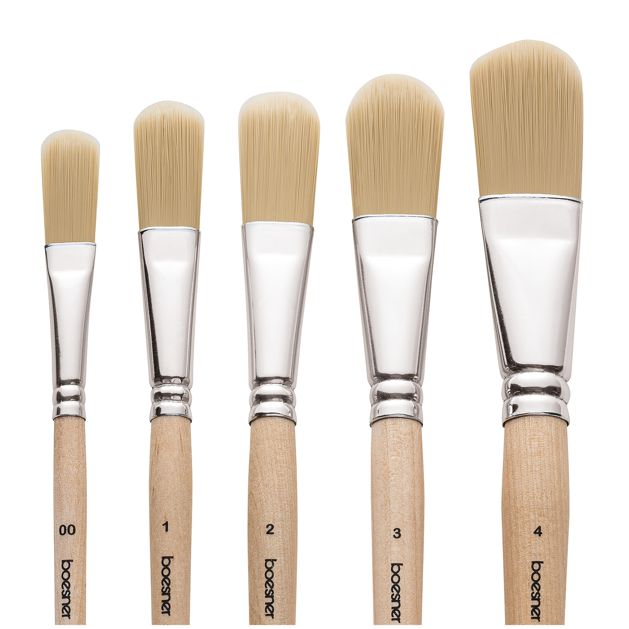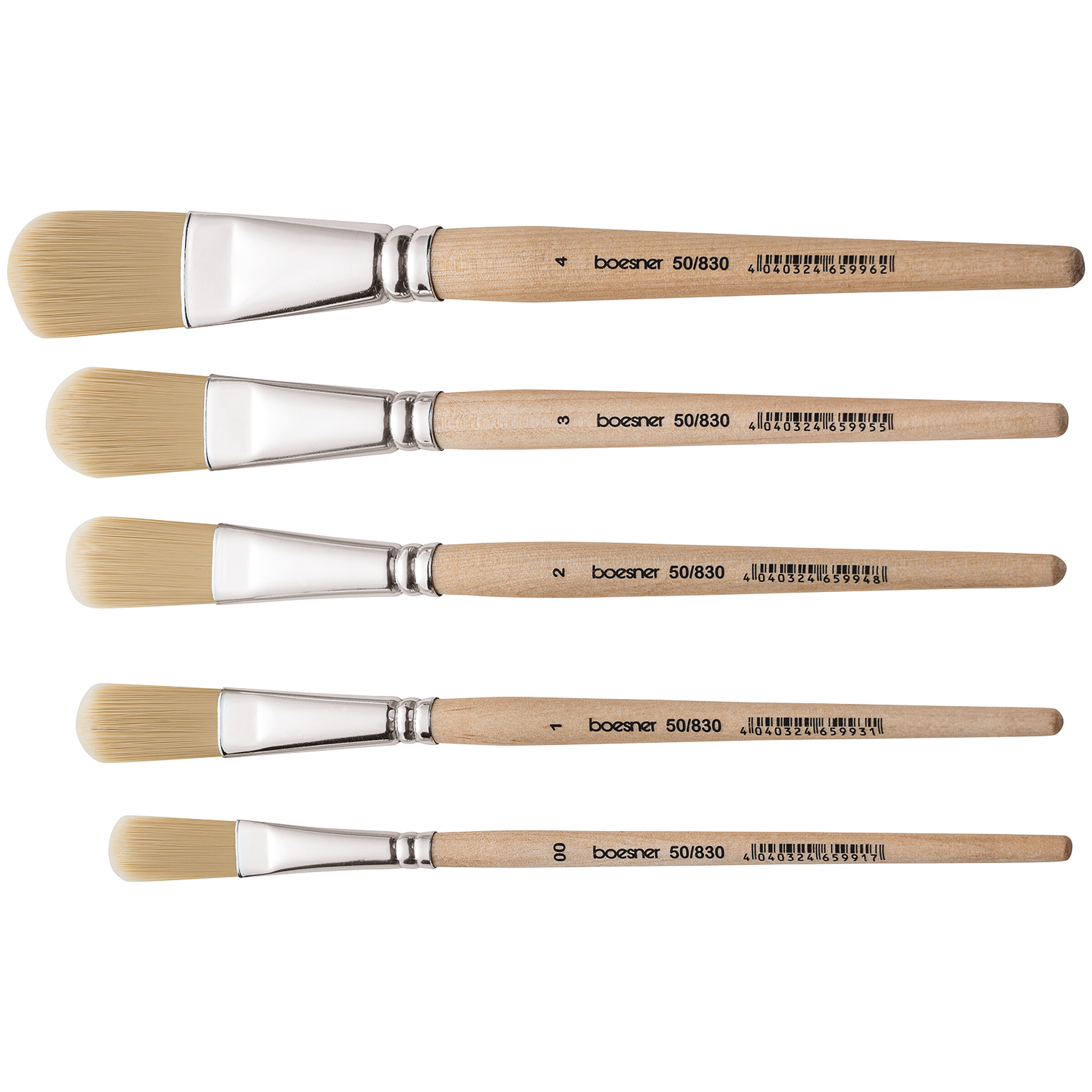 Universeller Pinsel mit Synthetikbesatz. Aluzwinge, kurzer Naturholzstiel.