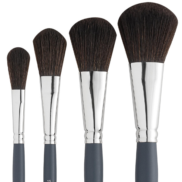 Die Verwaschpinsel-Serie eignet sich aufgrund ihrer sehr weichen und gewellten Synthetikfasern hervorragend zum Vertreiben, Verblenden und Vermischen aller flüssigen Farbtypen. Dank der strapazierfähigen und reißfesten Synthetikhaar-Qualität können aber auch kräftigere Farben gut verarbeitet werden. Die hohe Farbaufnahmefähigkeit ist mit Naturhaarpinseln vergleichbar. Damit gelingt auch ein sehr großflächiger Farbauftrag. Die Pinsel sind mit sehr hochwertigen Nickelzwingen und lackierten FSC-Birkenholzstielen gefertigt. Verfügbar in 4 Größen. Made in Germany.